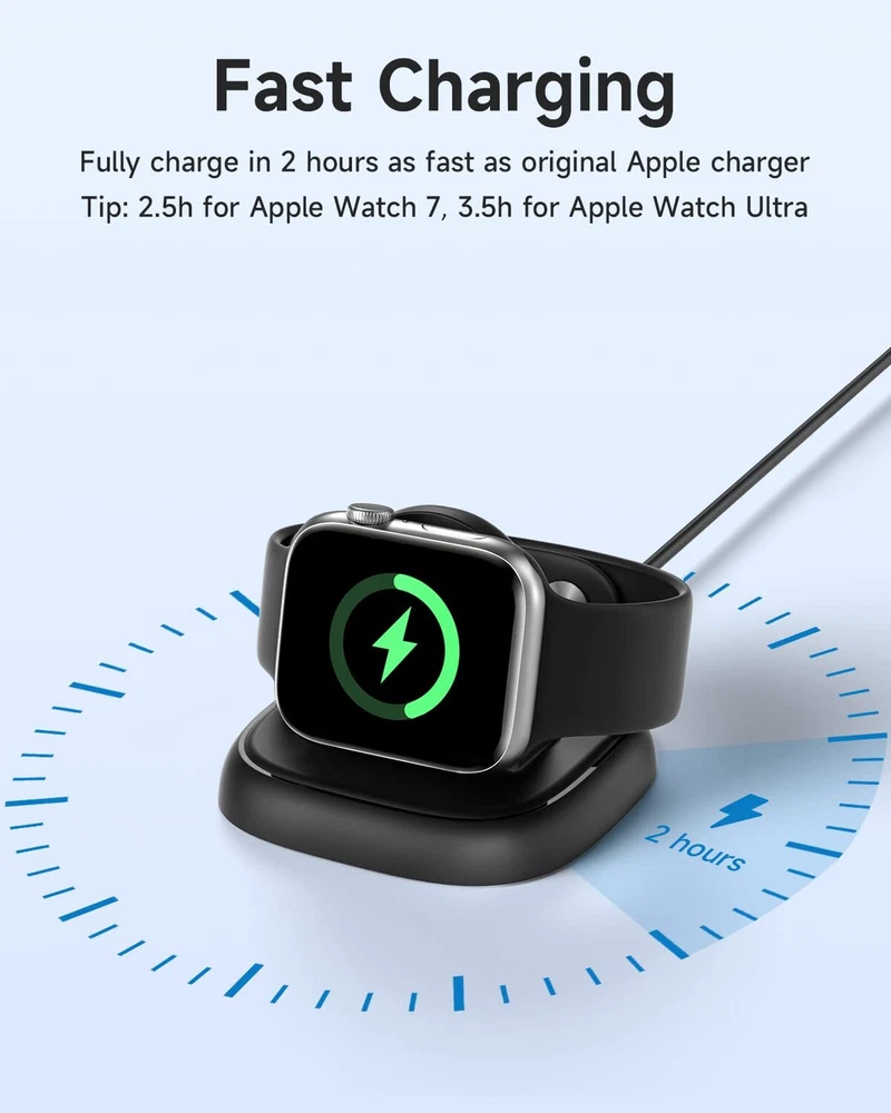 NEWDERY Charger Stand for Apple Watch, Portable Watch Charger for iWatch with US Features: [One Step Fast Charging] NOTE: The charger can't charge the newest system (watchOS 11). You can simply connect the charging stand for apple watch into a wall plug using the USB C cable since it just requires minimal assembly. The charging station is equipped with intelligent chip which helps fast charging in about 2 hours. (2.5 hours for Series 7, 3.5 hours for Series Ultra) [Strong Magnetic Design] NEWDERY watch charger for iWatch has built in magnetic modules which helps to align the Apple watch and makes it easier to charge. [Lightweight & Stable] The charger stand has an anti-slip base mat and 85g weight design which provides stability during usage. The watch charger compact and lightweight design makes the charger portable and can be carried around in daily use and also while travelling. [Universal Compatibility] The charger is portable with a wide variety of iWatches such as series 9,Ultra, SE, 8, 7, 6, 5, 4, 3, 2 (38mm 40mm 41mm 42mm 44mm 45mm 49mm version), Sport, Nike plus, Hermes and Apple Watch Edition. (Note: It doesn't charge Watch Series 1) [Package Includes] The package includes 1 wireless charging stand and 1 USB-A to USB-C cable. Features: [One Step Fast Charging] NOTE: The charger can't charge the newest system (watchOS 11). You can simply connect the charging stand for apple watch into a wall plug using the USB C cable since it just requires minimal assembly. The charging station is equipped with intelligent chip which helps fast charging in about 2 hours. (2.5 hours for Series 7, 3.5 hours for Series Ultra) [Strong Magnetic Design] NEWDERY watch charger for iWatch has built in magnetic modules which helps to align the Apple watch and makes it easier to charge. [Lightweight & Stable] The charger stand has an anti-slip base mat and 85g weight design which provides stability during usage. The watch charger compact and lightweight design makes the charger portable and can be carried around in daily use and also while travelling. [Universal Compatibility] The charger is portable with a wide variety of iWatches such as series 9,Ultra, SE, 8, 7, 6, 5, 4, 3, 2 (38mm 40mm 41mm 42mm 44mm 45mm 49mm version), Sport, Nike plus, Hermes and Apple Watch Edition. (Note: It doesn't charge Watch Series 1) [Package Includes] The package includes 1 wireless charging stand and 1 USB-A to USB-C cable. eBay integration by