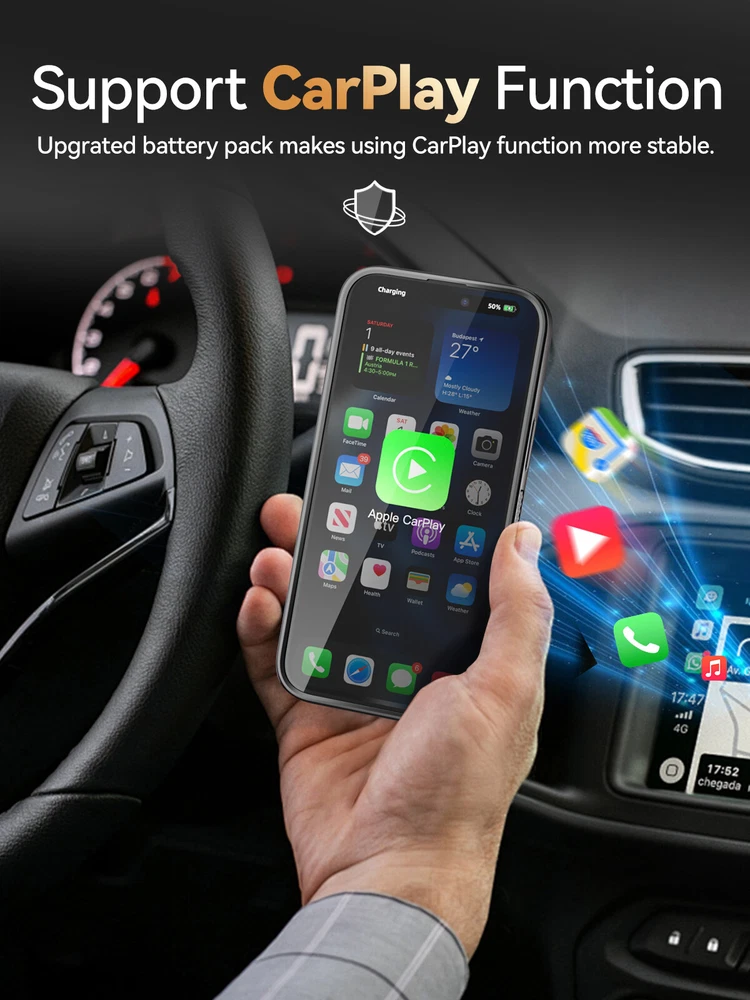 [Compatibity] NEWDERY 5000mAh battery case ONLY fit for iPhone 16 Pro. NOTE: NOT for iPhone 16/16 Pro Max/16 Plus and not for iPhone 14/15 series. [CarPlay & Sync-Data & Wired Headphones Supported] Upgraded design for iphone 16 pro battery case makes you use the CarPlay function more stable, don’t will be disconnected anymore. It is also support the sync-data, wired headphones and for Apple Pay function. Pefect for working, business trip and travel. [Upgraded Design] NEWDERY newest design for iPhone 16 pro charging case makes you more easy to use. Just push your phone into the case then click the power button, it will wireless charge your phone likes the wireless power bank. And the portable battery is built in the Type-C charging port, you can charge the case or share the power to charge other devices via this port. NOTE: Doesn’t support the Qi or magnetic wireless charging. [ 360°Protection & LED Indicator] 360°protecting your phone for a whole day. The hard shell back design offers complete protection for your phone from scratches, daily wear and tear, 6.8mm camera & 1.25mm screen raised bezel edge and tempered screen protector helps you to protect the screen. It combines a power bank and a protective case. Press the power button to check the battery level, the LED indicator light will shows you the battery level (25%-50%-75%-100%). One click or double clicks the power button to turn on or turn off charging. [What You Get] Package including: 1x Battery case for iPhone 16 Pro, 1 x Tempered Screen Protector, 1 x USB C-C charging cable and 1 x User manual. It has a 12-month support ensures, you will be offered full assistance from our NEWDERY Customer Support Team. NEWDERY Portable Upgraded Design Rechargeable Extended 5000mAh Battery Case for iPhone 16 Pro 6.3inch Product Specifications: 1. Input: 5V/2.4A 2. Output: 5V/2.4 3. Case wirelss charging the phone: 5W/7.5W 4. Dimensions: 5.97*2.99*0.78 inches; Weight: oz 5. Compatibility: ONLY fit for iPhone 16 Pro, 6.3". *NOTE*: Doesn't fit for iPhone 16 Pro Max/16 Plus/16. 6. Compatiable with Apple Pay, CarPlay, Wired Headphone and Sync-data function. *NOTE*: DOESN'T support Qi wireless or magnetic charging.