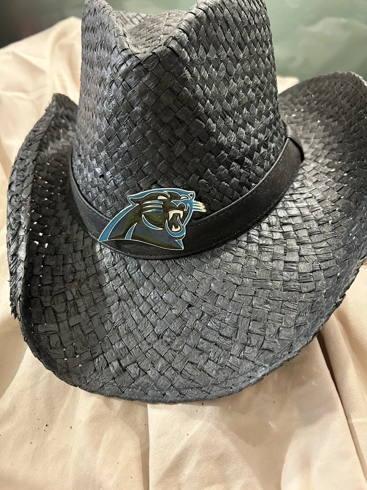Show your support for the Carolina Panthers with this official NFL straw cowboy hat. The black color and one size fits all design make it a perfect addition to any fan's collection. Represent your favorite team during regular season games or simply add it to your sports memorabilia collection. Made in China and featuring the Carolina Panthers team logo, this hat is a must-have for any NFL fan.