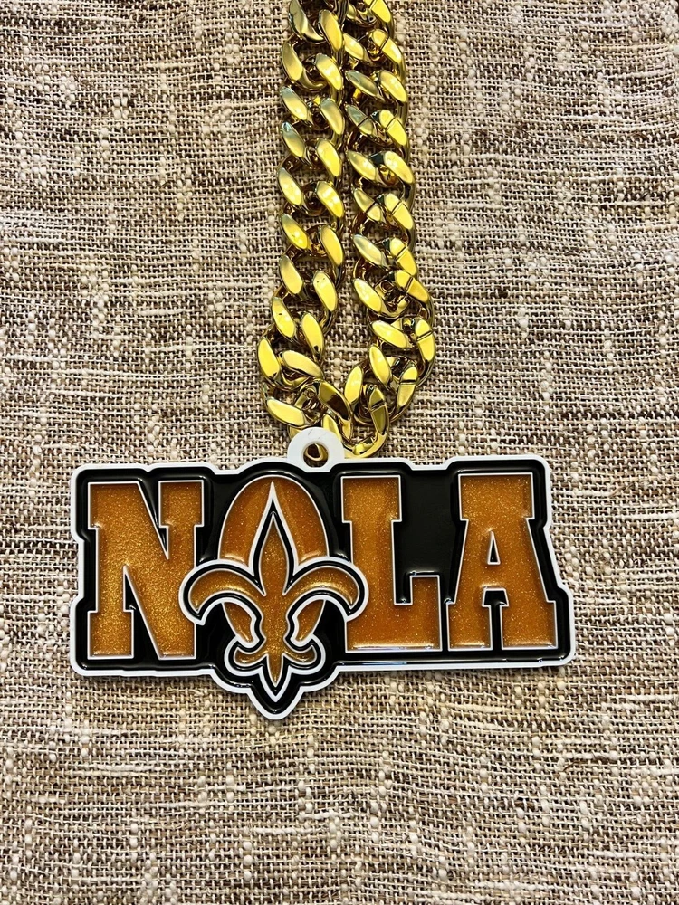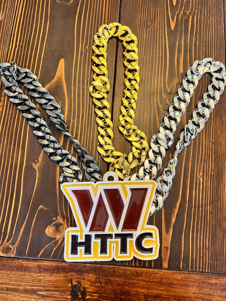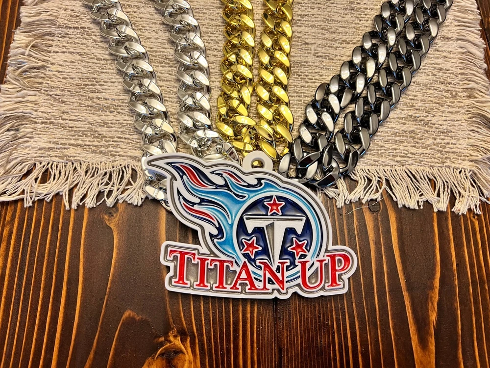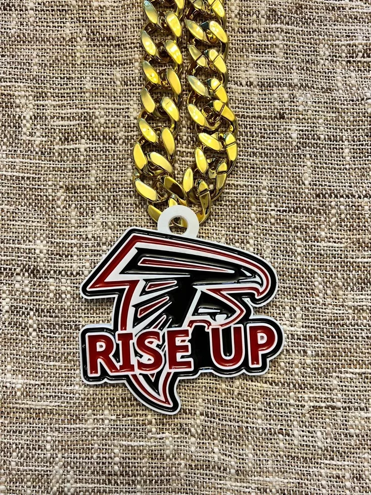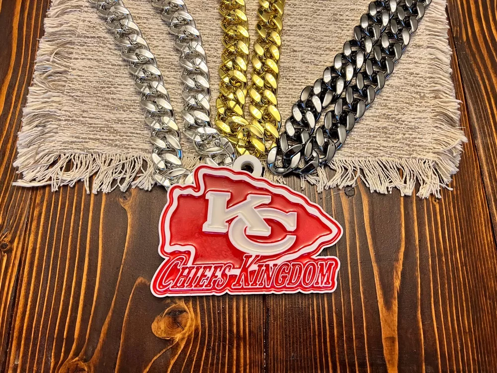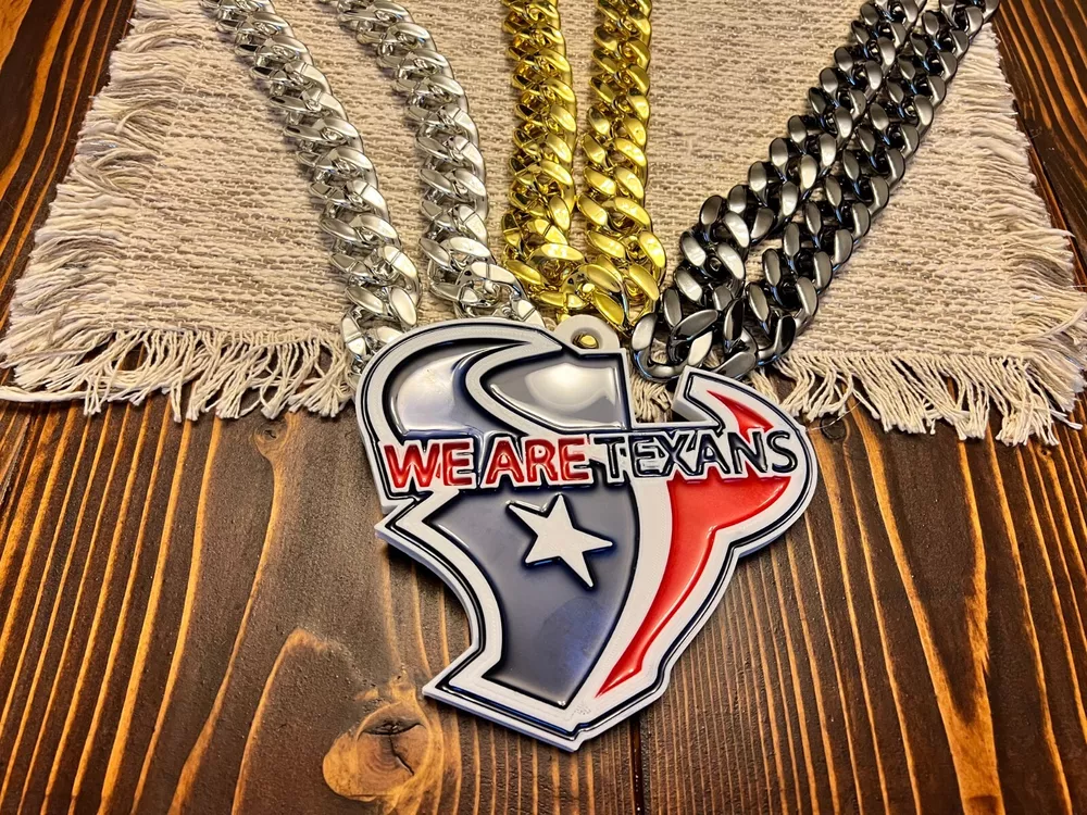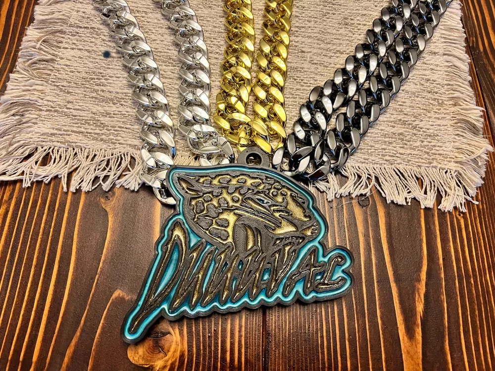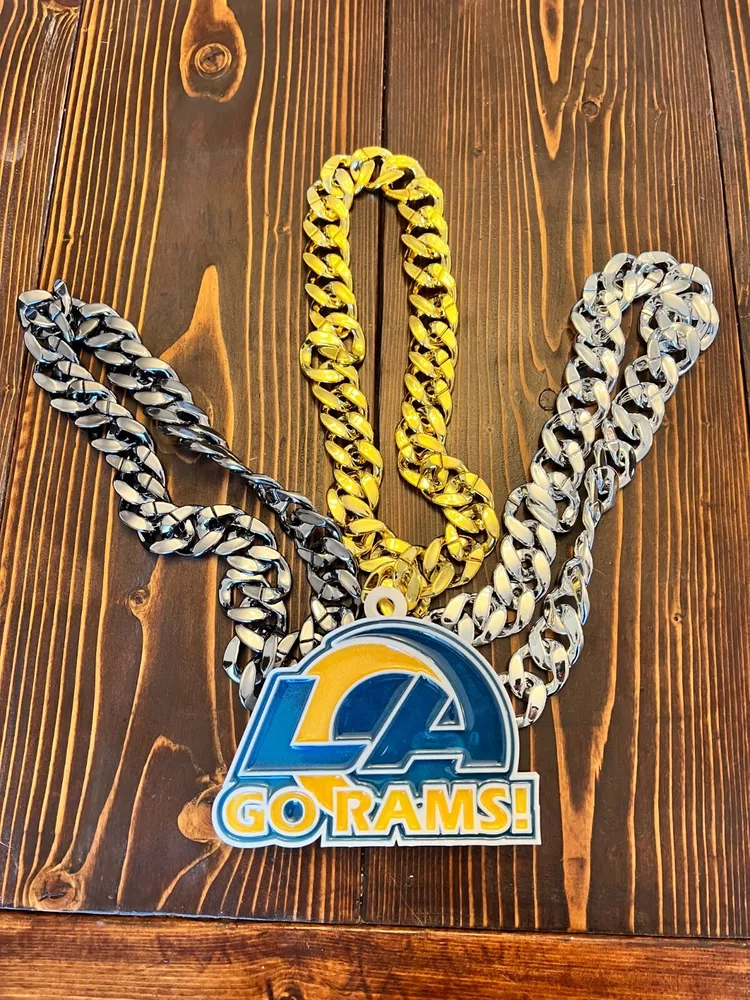Tired of those cheap foam medallions always ripping and tearing? These solid 3D printed swag chains will last for seasons! Is your friend or family member a huge football Fan? Whether a birthday, Christmas or simply celebrating the start of the new season, our 3D printed Medallions make the perfect gift! These PLA and Epoxy logos can also serve as the perfect addition to any fan cave. Each medallion is approximately 6x6 inches and weighs less than 1lb. Each one is hand-made in the USA and 3D printed, sanded, coated, primed, and painted by hand. The final step is the epoxy pour which leaves a custom one-of-a-kind granite effect. Each medallion has a unique finish and look so final results in the granite effect will vary. Do you want a custom swag chain with your own logo and text? Message me for details. At Fins Place Art we only use Artresin Epoxy which has passed the strict California Prop 65 testing. However, we will still include the warning for shipments going to California.