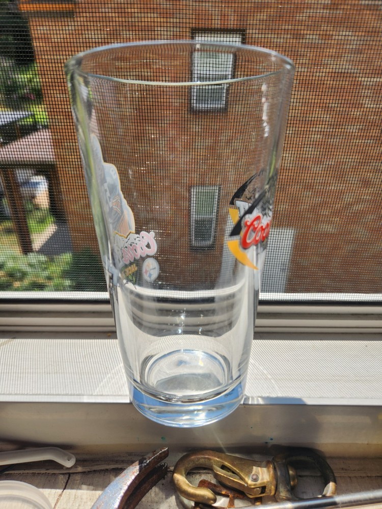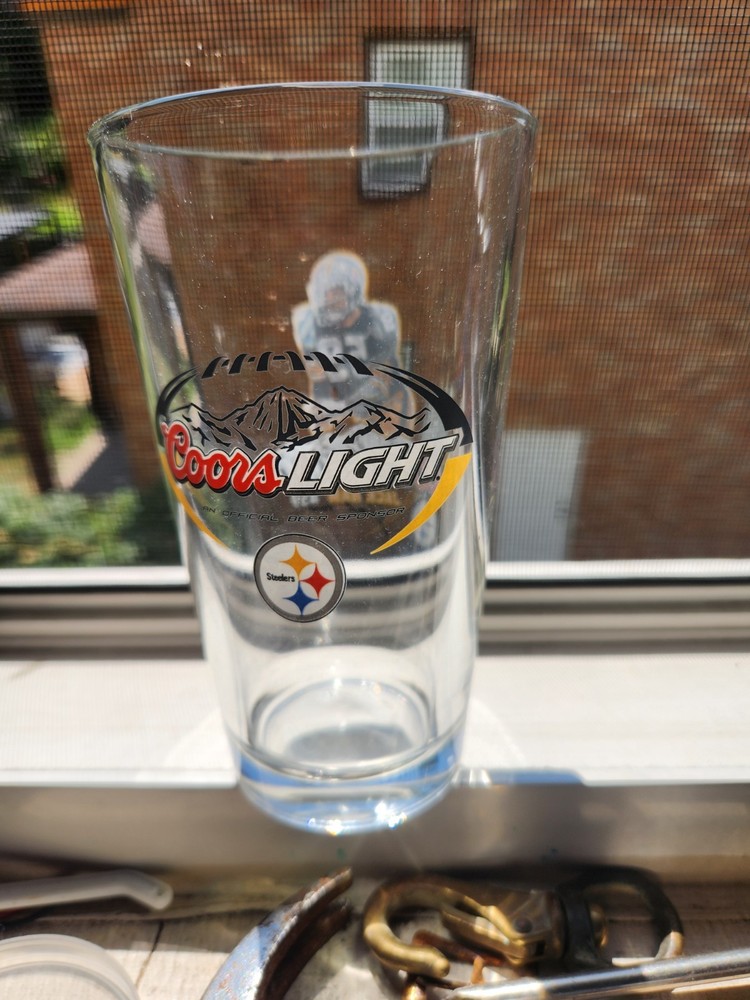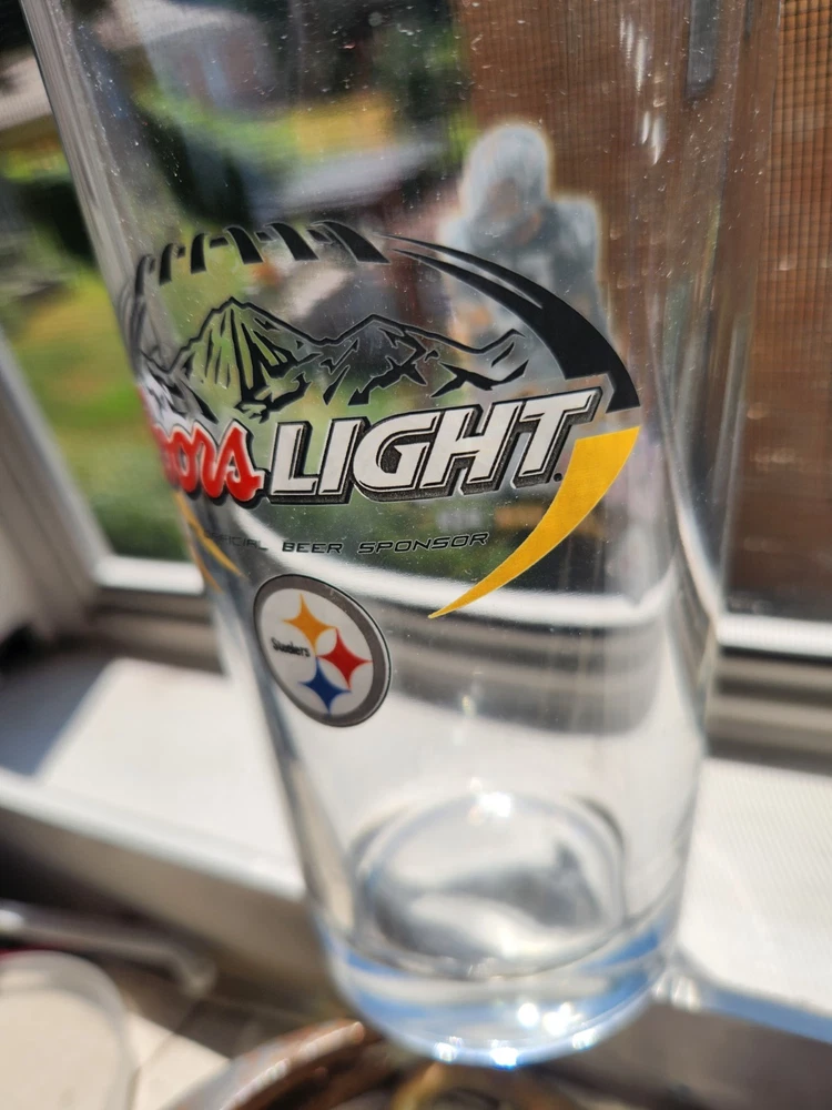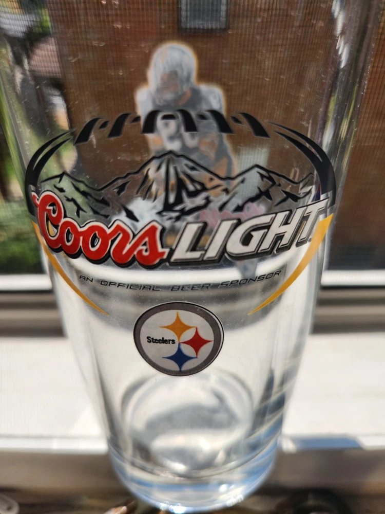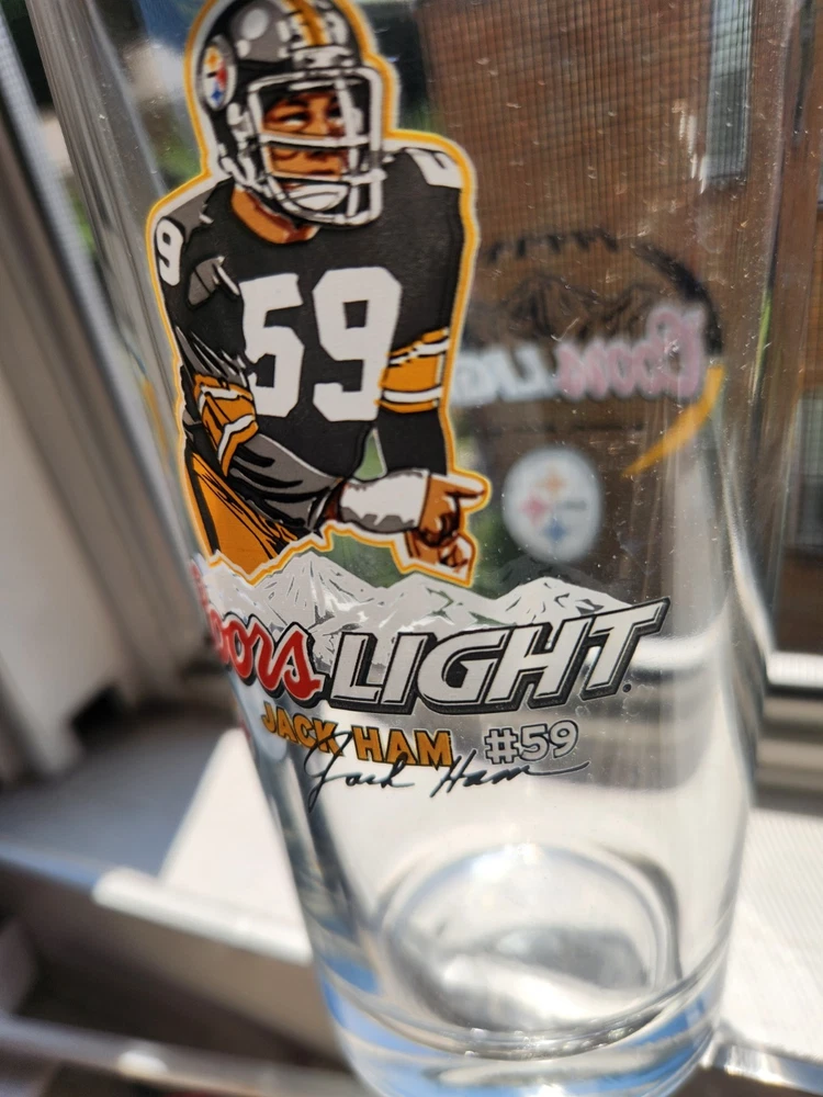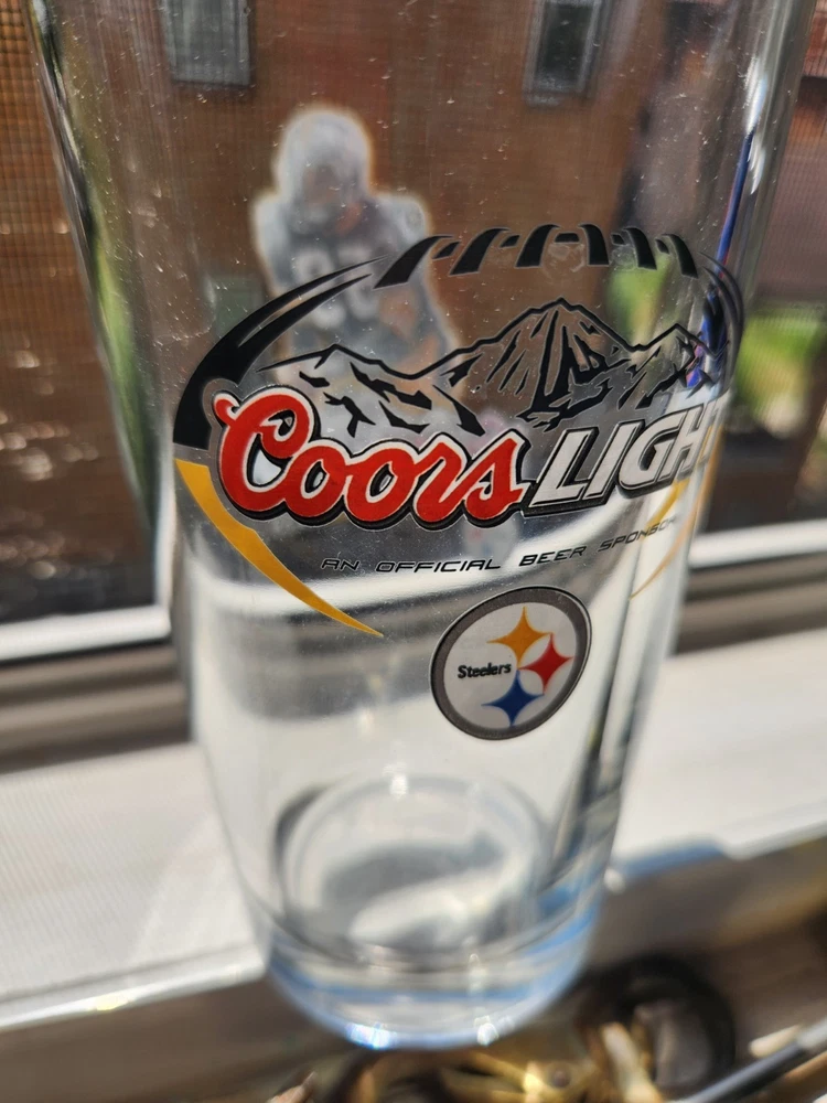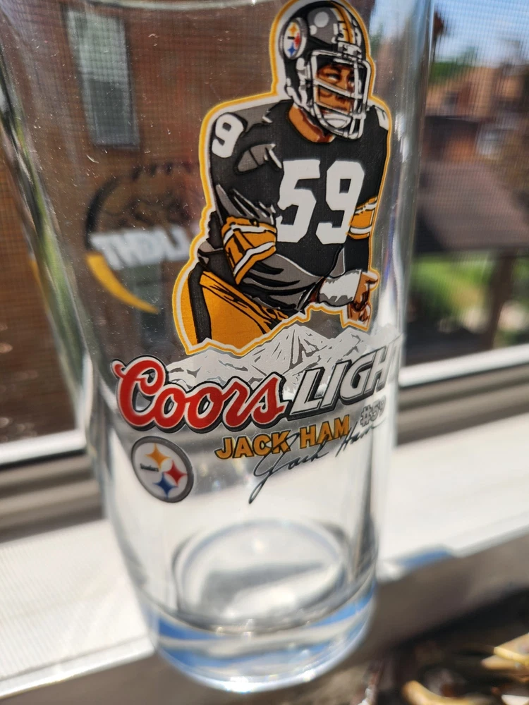 The jacket ham coors light steelers glass that you see in the pictures is what you will be getting 16 oz when completely full In excellent condition