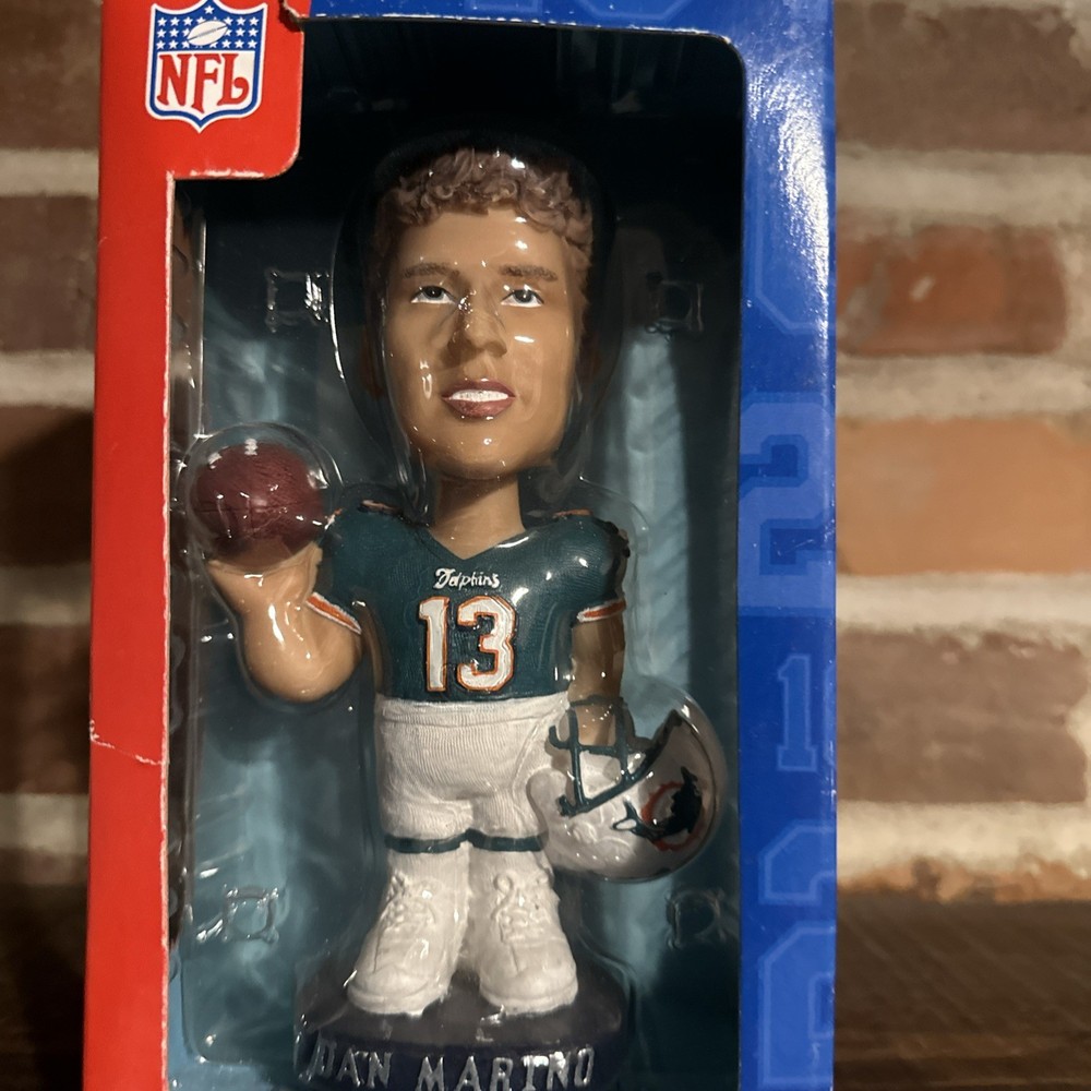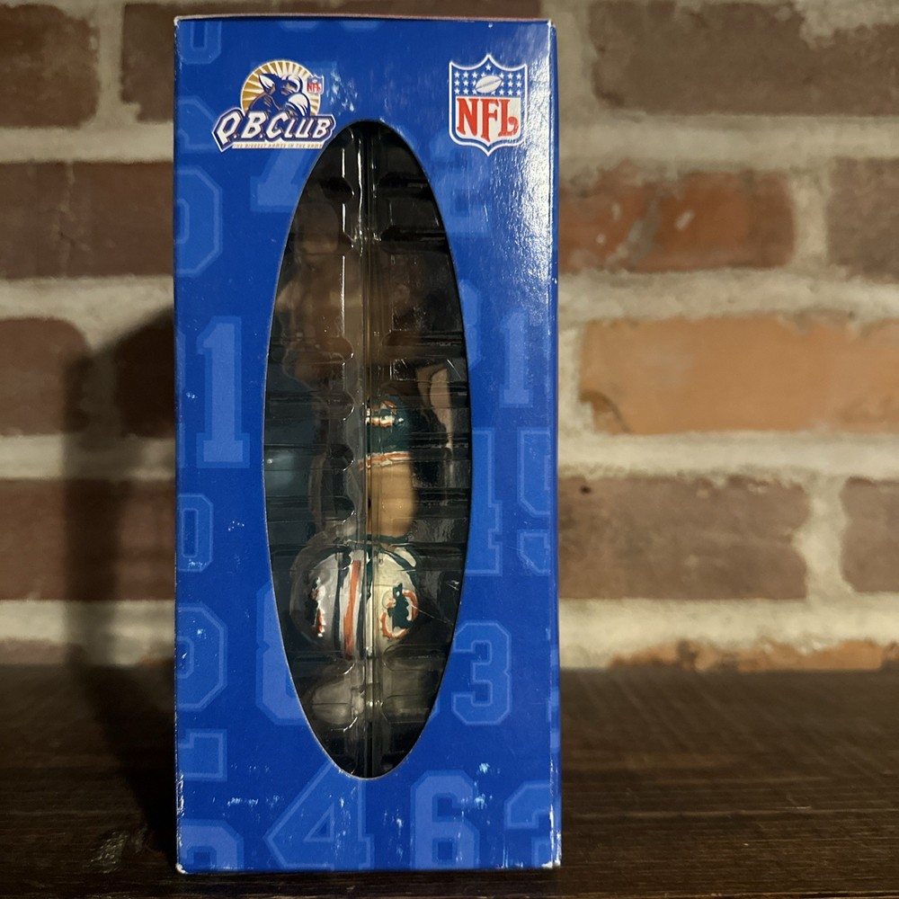 The NFL QB Club: Miami Dolphins DAN MARINO Hand Painted Bobblehead Vintage NIB is a rare and collectible item for fans of football, specifically the Miami Dolphins. This authentic bobblehead features the legendary quarterback Dan Marino in his Dolphins uniform, beautifully hand-painted in intricate detail. Made in China, this vintage piece is a one-of-a-kind original item that would make a great addition to any sports memorabilia collection, especially for fans of the Miami Dolphins or football enthusiasts in general.