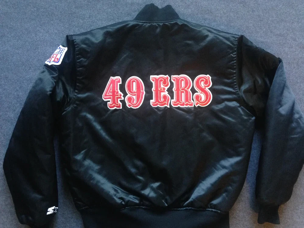 Description Step back into the 80s with this NFL 49ers San Francisco Reversible Satin Bomber Jacket. Featuring a classic gold satin on one side and a sleek black on the other, you get two looks in one. Perfect for 49ers fans or vintage style lovers, this jacket is made with high-quality materials for comfort and durability. Show your team pride and rock a bold, retro style with this must-have bomber. “If you’re looking for bulk orders at competitive prices, please get in touch. Thank you!”