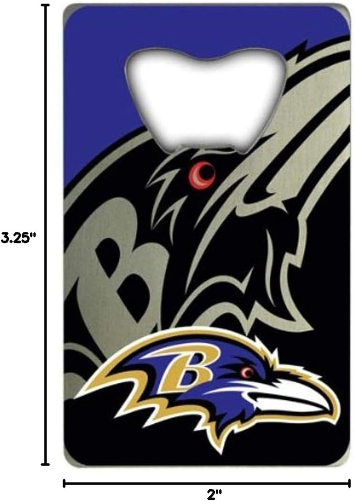 Menu Other Items Feedbacks About Us Contact Us Add To Favorites NFL Credit Card Style Bottle Opener Made from Durable, Light-Weight Steel Dynamic Printed Team Colored Graphics Fits Conveniently in Your Wallet or Pocket Carry a Bottle Opener Wherever You Go Great Way to Showcase Your Team Pride Item Specification Warranty Description 1 Year Limited Manufacturer's Warranty Number of Items 1 Item Weight 0.04 Pounds Style Credit Card Style Bottle Opener - 2” x 3.25 Package Weight 0.05 Pounds Is Customizable No Material Metal Suggested Users unisex Model Name NFL Credit Card Bottle Opener Finish Type Steel Item Package Dimensions L x W x H 5.1 x 1.9 x 0.1 inches Sport Type Football Team Name Baltimore Ravens Part Number 62544 Item Dimensions LxWxH 3.25 x 2 x 0.1 inches Color Team Color Global Trade Identification Number 00681620623031 Included Components 1 Metal Bottle Opener Product Dimensions 3.25"L x 2"W Size One Size Dimensions Shipping Returns Additional Info Product Dimensions: 1.9 inches x 5.1 inches x 0.1 inches. Weight: 0.05 lb Fast shipping is very important for us. Our standard shipping service is FREE. Your order will be shipped within 1-3 business days upon full payment received. Most items are delivered within 3-5 business days, however, please allow 3-10 business days. We are shipping only to USA. We only ship to the confirmed Paypal address. We reserve the right to cancel any order for any reason at any time. We are not responsible for undeliverable addresses. We offer a 30 day return policy from checkout winning date. Your satisfaction is guaranteed! If for any reason you are unhappy with your item, just return it within 30 days for a full refund, minus shipping cost. Please contact us prior to initiating a return so that we can issue you a refund authorization. Items defective upon receipt must be packaged in their retail packaging as if new and returned with a detailed description of the problem. Return shipping fees are not refundable. We reserve the right to decline any returns if the above guidelines are not followed. All of our items, unless otherwise stated, will only run on 120 volts. Please check to make sure your country complies with these specifications. If you have a problem or question regarding your transaction please contact us before leaving any type of feedback. We will work with you to resolve any problem you may have.