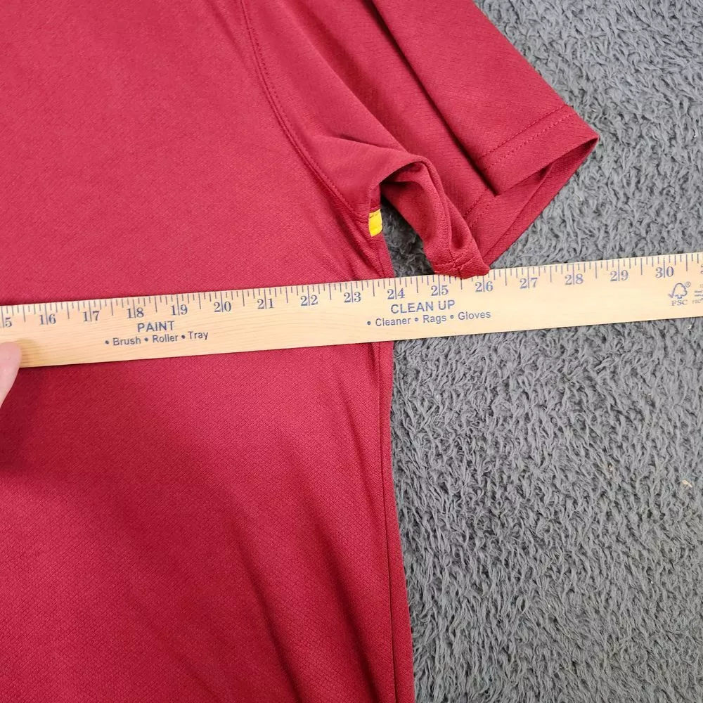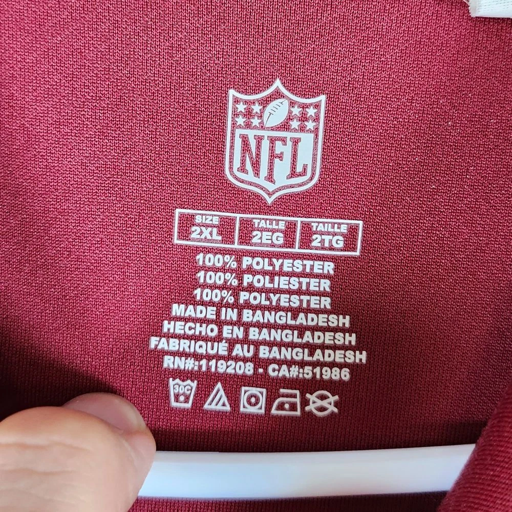 Show your team spirit with this authentic NFL performance polo. Perfect for game days, casual Fridays, or any sports-related occasion. Features moisture-wicking fabric with team colors and embroidered logo. Ideal for tailgating, watching the game, or representing your team at casual events. Professional styling meets fan dedication in this comfortable, athletic-inspired piece. Color: Red Department: Men Type: Polo Performance/Activity: Football Sleeve Length: Short Sleeve Pattern: Solid Fit: Athletic Material: 100% Polyester Features: Moisture Wicking, Breathable, Lightweight, Contrasting Trim Neckline: Collared Keywords: NFL polo, Washington Redskins, football gear, team apparel, performance polo, athletic wear, sports clothing, fan merchandise, game day outfit, moisture wicking, team logo