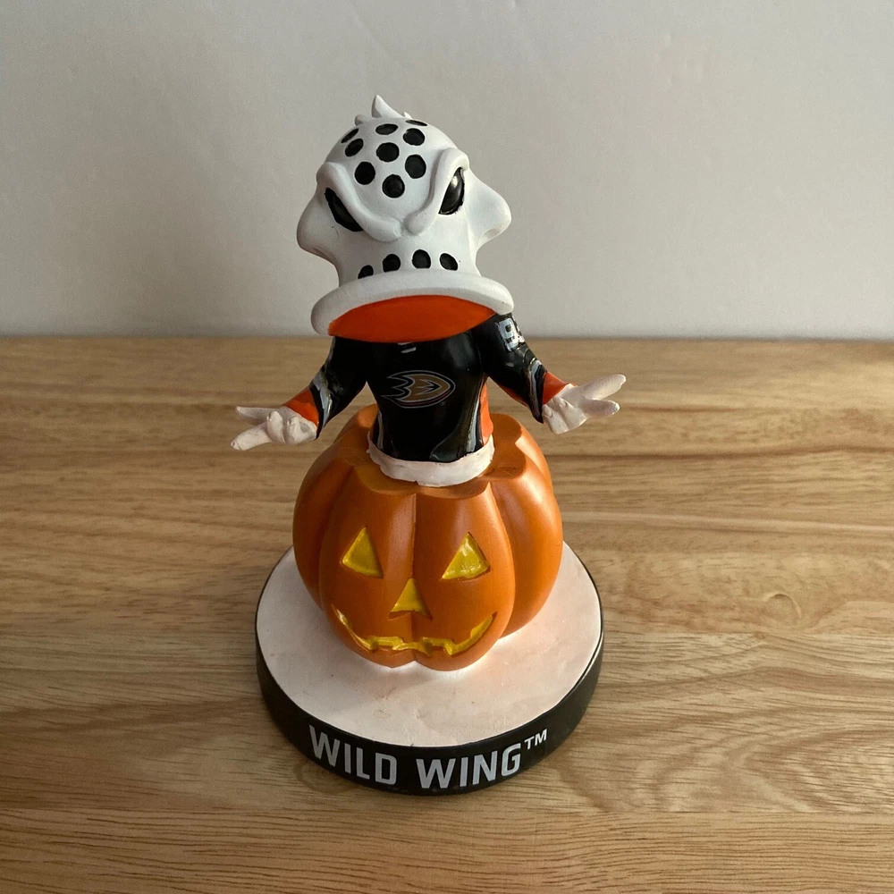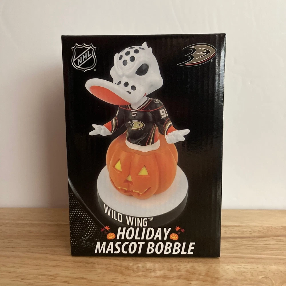 NHL Anaheim Ducks Wild Wing Mascot Bobblehead - Halloween Holiday Special Edition This unique bobblehead is part of a special limited edition production run of only 300 bobbleheads, produced by Kollectico. Per the manufacturer, each bobblehead is carefully handmade and hand painted to ensure both quality and consumer satisfaction. Additionally, each bobblehead of the production run is individually serial numbered; therefore, the serial number showcased in the photo above may not match the serial number of the bobblehead you will receive, as there are multiple bobbleheads available (but each bobblehead will be of equal scarcity). Bobblehead is brand new, never before opened (except once to take the photos seen above), and remains in its original packaging. Smoke-free house. Shipped via USPS Mail Service (with tracking). If you happen to have any questions or concerns, please let me know! Thanks for looking!! All bobbleheads are manually checked before packaging/shipping to ensure they are in the condition stated above. We combine shipping! Full-price shipping for the first item purchased (or the item with the most expensive shipping cost) and half-price shipping for each additional item, so feel free to check out my other listings!