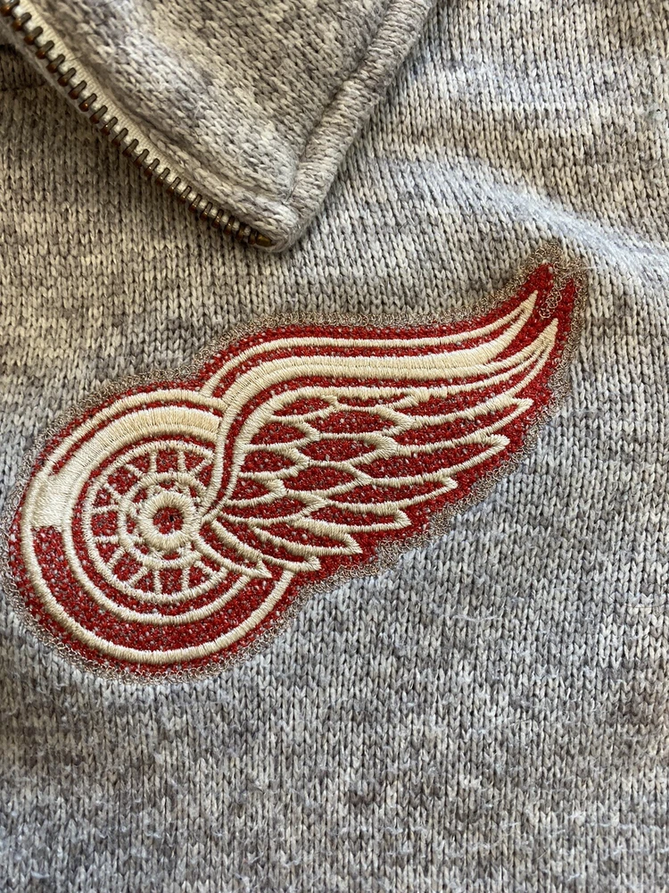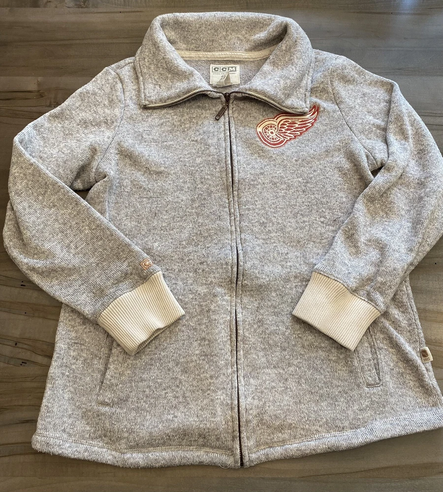 NHL Detroit Red Wings Vintage style CCM Gray Knit zip-up, womens sz large, EUC.