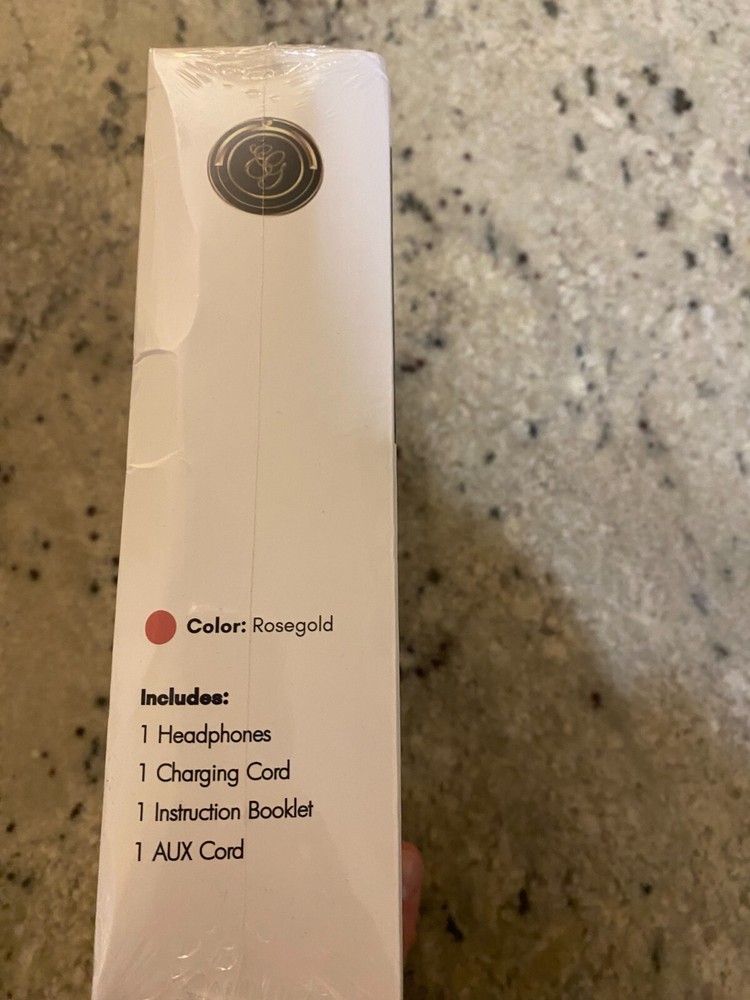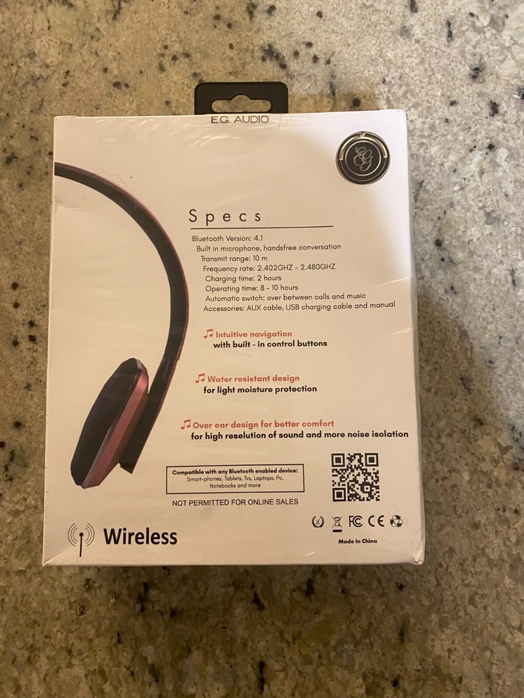 Brand New, Never Opened E. G. Wireless Headphones. Rosegold color. Box includes: headphones, 1 charging cord, instruction manualand 1 AUX cord