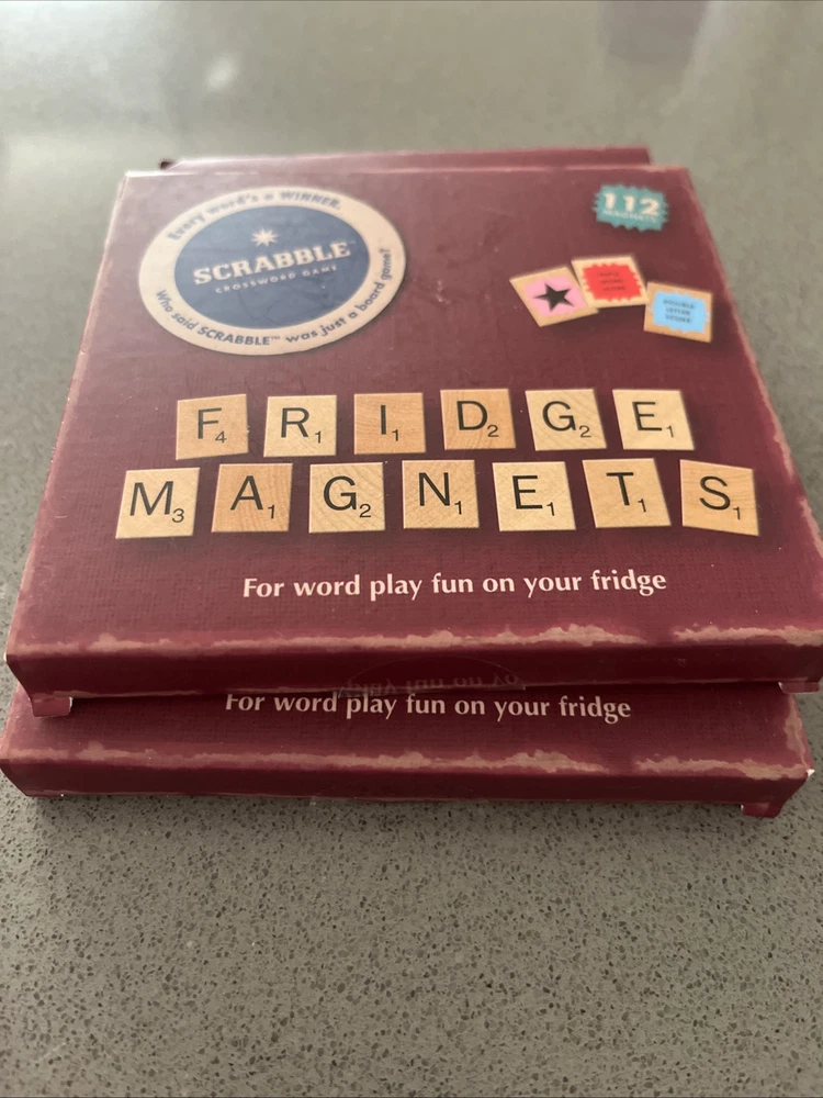 Enhance your fridge with a touch of wordplay fun with this set of two Scrabble-themed magnets. Each magnet boasts a square shape, featuring a tan color palette that seamlessly blends into any kitchen aesthetic. Ideal for showcasing your love for puzzles and games, these flexible fridge magnets are perfect for sprucing up your appliance or locking in your study notes. Whether you're a crossword enthusiast or a collector of unique souvenirs, these magnets serve as both a functional item and a charming keepsake. Proudly display your passion for letters and word puzzles, or gift them to the avid game lover in your life. They’re an attractive addition to any magnetic surface, from refrigerators to filing cabinets.