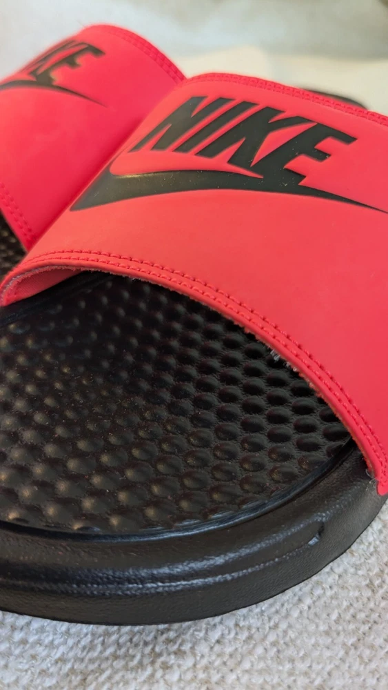 NIB Nike Benassi JDI 343881 018 Blac Flash Crimson Slides Sandals Shoes Women 7. Condition is New with box. Shipped with USPS Ground Advantage.