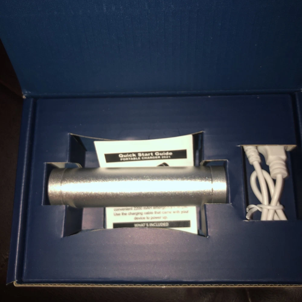NIB Portable Charger 2621. Comes with micro USB charging cable Charge your portable devices with this convenient 2209 mAh emergency charger USB charge in 3 hours depending on USB port power level Thanks
