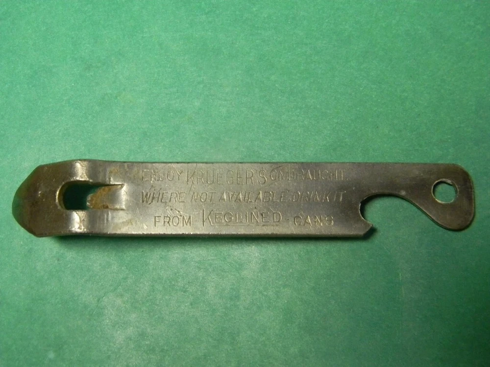 HERE IS A VINTAGE LATE 1930'S, KRUEGER'S FROM KEGLINED FLAT TOP CANS, METAL BOTTLE OPENER KEY CHAIN. THIS IS THE CANCO QUICK AND EASY OPENER VERSION. WHAT A FIND! GOOD CONDITION! SEE PICS! BREWED BY THE KRUEGER BREWING COMPANY IN NEWARK NEW JESEY FROM 1930'S NICE FIND IN THIS CONDITION! HAVE OTHER KRUEGER OPENERS LISTED TOO AND WILL COMBINE SHIPPING! JUST ASK BEFORE YOU PAY! PAYMENT MUST BE RECIEVED 3 DAYS AFTER AUCTION CLOSE. ANY QUESTIONS PLEASE ASK. DELIVERY CONFIRMATION INCLUDED! THANKS FOR LOOKING! FEEDBACK WILL BE LEFT AFTER YOU HAVE LEFT FEEDBACK AND ARE SATISFIED.