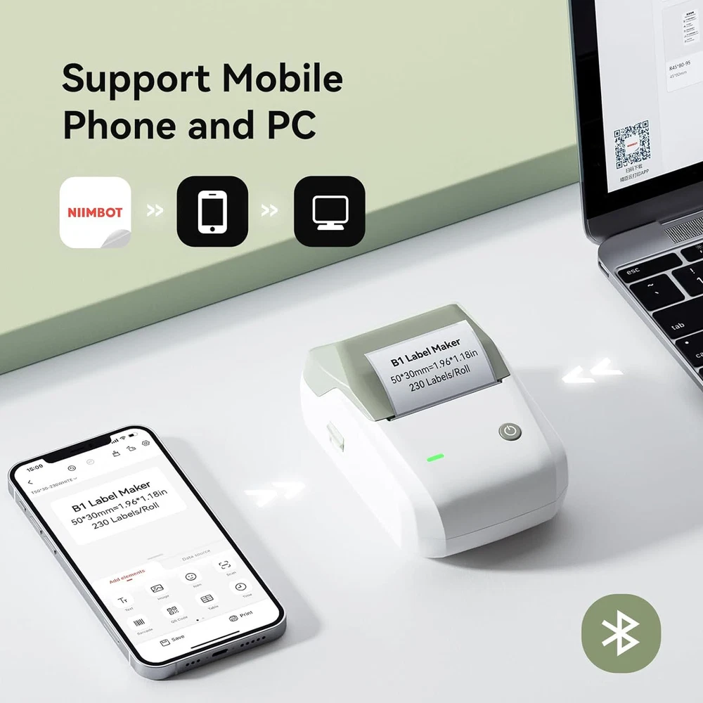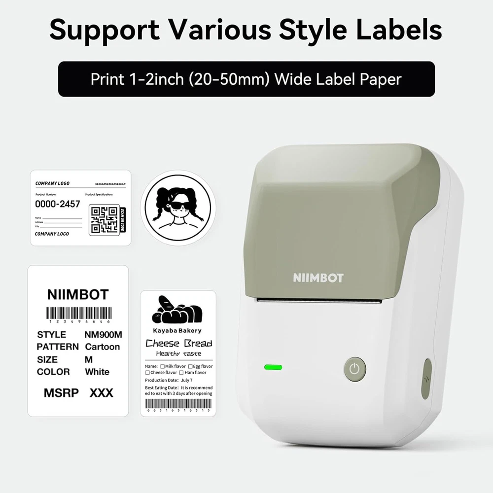 About this item 1. More Convenient RFID: All labels of our NIIMBOT use RFID tech, after replacing a new label, our printer can auto-identify the label information and size. No need to manually scan the barcode on the package to select the label type & size. 2. Portable Printer: Wireless bluetooth label maker can slip into your pocket. The compact and lightweight design makes it easy to carry store, and print labels and stickers anytime, anywhere. This label maker can keep your life and business tidy. 3. High-quality Printing: Label maker without BPA direct thermal technology equipped with 203DPI resolution print head, you can enjoy high-definition without relying on ink or toner. Built-in rechargeable battery with 1500mAh large capacity battery can print 4 hours continuously after fully charged. 4. Easy to Use: This label printer compatible with IOS & Android Phones, you can download the "NIIMBOT" APP from Google Play or App Store. The app provides multiple creative functions and templates, easy to create various design label stickers from the App to make the label you need. 5. Wide Application: The label maker printing width up to 50mm with a variety of styles of label tapes, widely used in home storage and organization, school and office file classification, and small business, such as jar stickers, food date, cosmetics, personal items, barcodes, name tags, cable identification, price tags, etc. It’s also the perfect back-to-school supplies and home helper. Product Specifications Support System: Android 8.0 / iOS 9.0 above / Windows7/8/10 above Print Speed: max 40mm/s Print Width: 20-50mm Pixel: 203dpi Battery Capacity: 1500mAh Interface: Type-C charge Size: 132×91×62 mm Weight: 293g Kindly Note: 1. Our NIIMBOT label maker only compatible with NIIMBOT Label tape, DO NOT SUPPORT OTHER BRAND LABEL. Please purchase official and genuine label for a better printing experience! 2. All purchasers of our NIIMBOT label maker will receive a free roll of label and 6 months of "NIIMBOT APP" VIP for free!