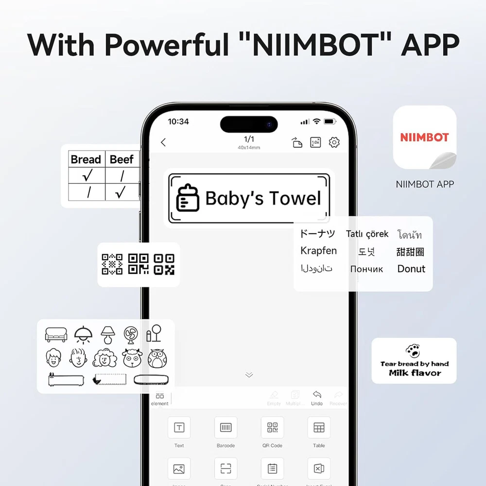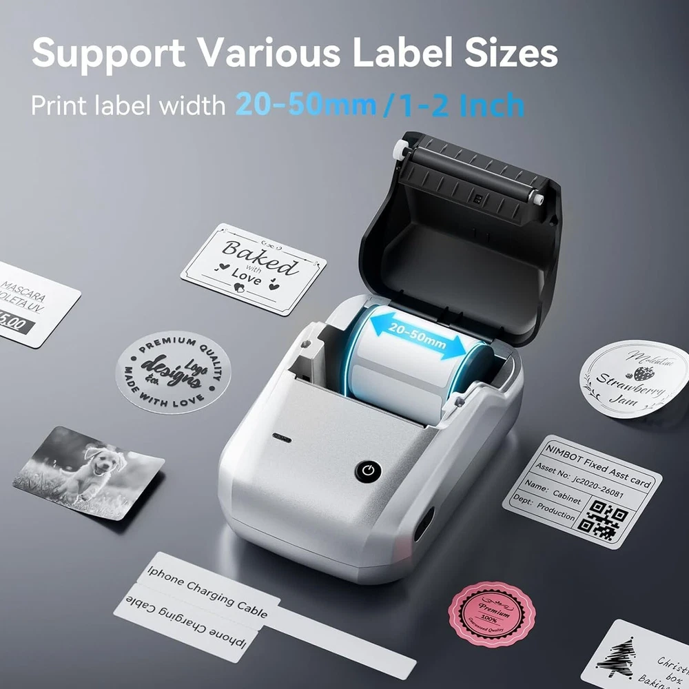 About this item 1. More Convenient RFID: All labels of our NIIMBOT use RFID tech, after replacing a new label, our printer can auto-identify the label information and size. No need to manually scan the barcode on the package to select the label type & size. 2. Portable Printer: Wireless bluetooth label maker can slip into your pocket. The compact and lightweight design makes it easy to carry store, and print labels and stickers anytime, anywhere. This label maker can keep your life and business tidy. 3. High-quality Printing: Label maker without BPA direct thermal technology equipped with 203DPI resolution print head, you can enjoy high-definition without relying on ink or toner. Built-in rechargeable battery with 1500mAh large capacity battery can print 4 hours continuously after fully charged. 4. Easy to Use: This label printer compatible with IOS & Android Phones, you can download the "NIIMBOT" APP from Google Play or App Store. The app provides multiple creative functions and templates, easy to create various design label stickers from the App to make the label you need. 5. Wide Application: The label maker printing width up to 50mm with a variety of styles of label tapes, widely used in home storage and organization, school and office file classification, and small business, such as jar stickers, food date, cosmetics, personal items, barcodes, name tags, cable identification, price tags, etc. It’s also the perfect back-to-school supplies and home helper. Product Specifications Support System: Android 8.0 / iOS 9.0 above / Windows7/8/10 above Print Speed: max 40mm/s Print Width: 20-50mm Pixel: 203dpi Battery Capacity: 1500mAh Interface: Type-C charge Size: 132×91×62 mm Weight: 293g Kindly Note: 1. Our NIIMBOT label maker only compatible with NIIMBOT Label tape, DO NOT SUPPORT OTHER BRAND LABEL. Please purchase official and genuine label for a better printing experience! 2. All purchasers of our NIIMBOT label maker will receive a free roll of label and 6 months of "NIIMBOT APP" VIP for free!
