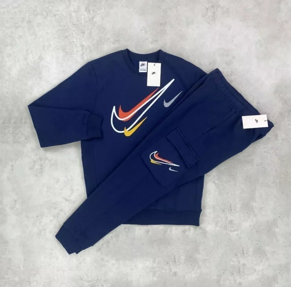Note; Inspired by Nike Brand Nike Air Mens Pullover Sweatshirt Cargo Style Jogger Sweat pant Tracksuit Set Please note that all products are sold as depicted in the listing images. While we strive to provide accurate color representations, variations in monitor settings, lighting conditions, and digital photography may cause discrepancies. As a result, we cannot guarantee that the color displayed on your screen accurately reflects the true color of the product. We recommend using product images as a guide only, rather than relying solely on screen representations for color accuracy. Nike Men's Pullover and Jogger Made in Pakistan 80% Cotton, 20% Polyester Soft and Warm Ribbed Cuffs & Hem Pullover Style Drawstring Closure Jogger Elastic Cuffs and Draw cord Waistband for a Secure fit The regular fit is Slim at the Hip and Relaxed through the Leg 2 Side Pockets Machine Wash: Please check the instructions before wash Size: XXS - 4XL Colour: Gray Tracking number provided with every order. Order now and elevate your wardrobe with this premium tracksuit,