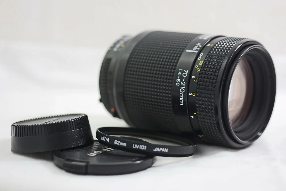 NIKON AF NIKKOR LENS THIS IS A GREAT LOOKING (EXCELLENT+) NIKON AUTO FOCUS 70-210MM F4-5.6 NIKKOR. GLASS IS CLEAN AND CLEAR WITH NO SCRATCHES, FUNGUS OR HAZE. NO OIL ON THE APERTURE BLADES. ALL LENS FUNCTIONS WORK SMOOTHLY. LENS WAS CAMERA TESTED AND IS WORKING WELL WITH NO ISSUES. LENS BARREL SHOWS ALMOST NO WEAR. COMES WITH NIKON END CAPS AND HOYA 62MM UV FILTER..