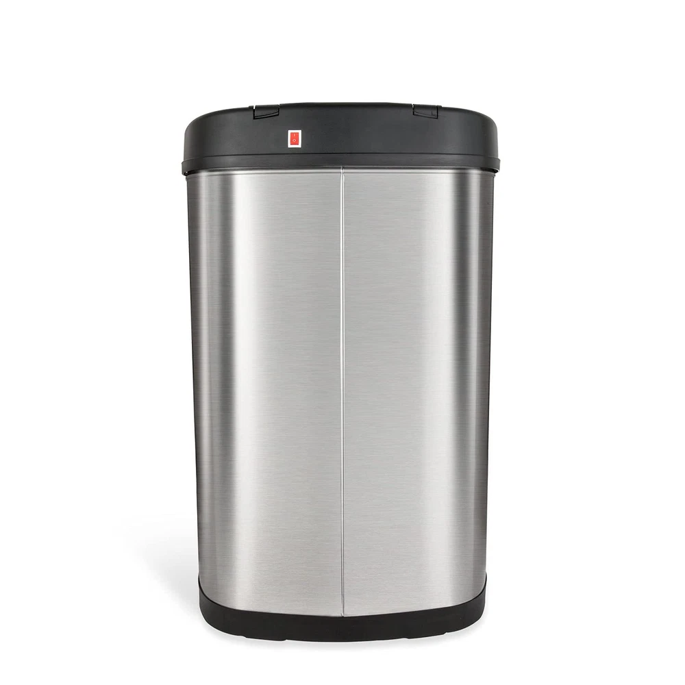About this item 【Hassle Free Two-Year Warranty】Hassle free warranty process with our dedicated customer service line and at no additional charges for your defective parts 【High Quality Materials】Water-resistant infrared motion sensor prevents moisture or any accidental spills from damaging the unit. Plust finger-print resistant stainless steel base helps keep the can clean. 【Advanced Technology】 Delay sensing technology preserves battery life and prevents any unnecessary opening from pets, children, or walking by. Quiet closing function for longivity of product life. 【Touch-free Motion Sensor Lid Clouser】Seal odor in and eliminate cross-contamination of germs. Requires 3 C batteries (not included), Alkaline battery highly recommended for best performance. 【Ease and Convenient】Removable ring liner holds trash bag sturdy in place and prevents bag from overhanging for a neat and clean appearance. Use any standard trash bags or NINESTARS custom trash bags NSTB-13-30.