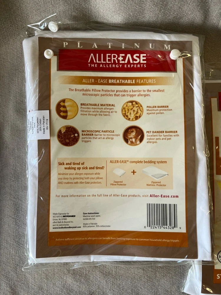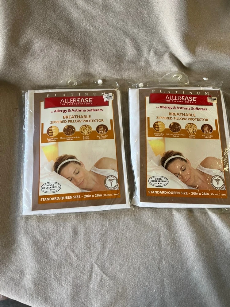 NIP AllerEase Zippered Breathable Pillow Protector Std/Queen White 20"x28”.