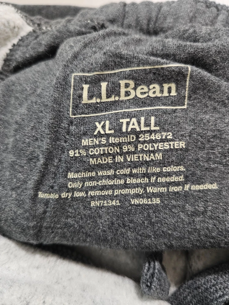 Men's LL Bean XL TALL Charcoal Heather sweatpants with zipper and button closure and zipper at ankles. New in package. I removed from package to measure and take pictures. Waist: 34" Inseam: 33" Returns accepted within 30 days in same condition as purchased. Buyer pays return shipping. Shipping USPS ground.