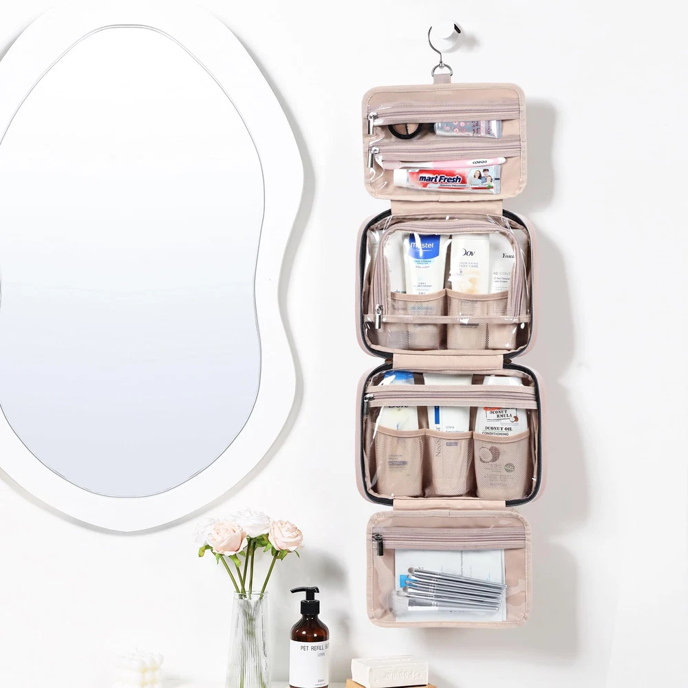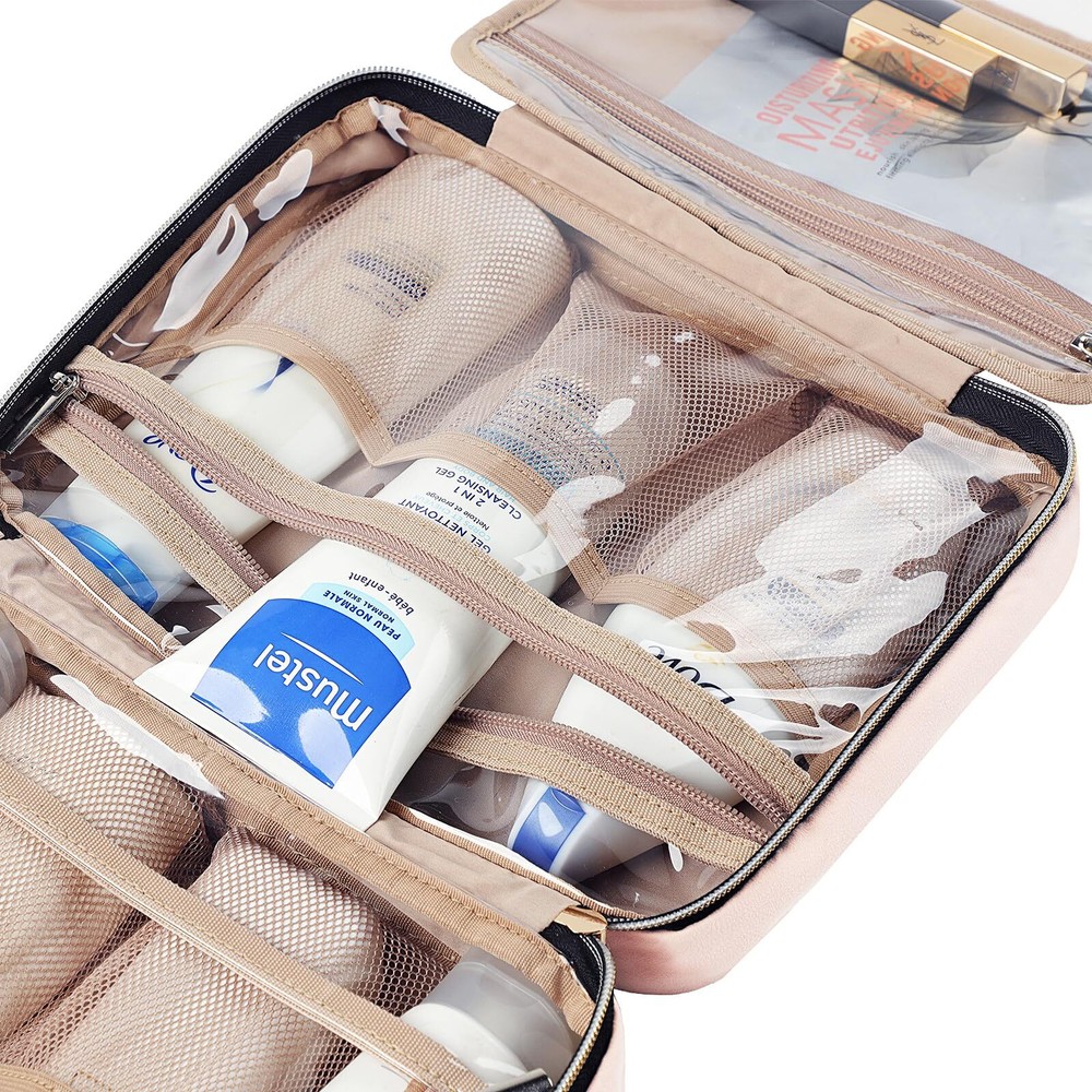NISHEL Travel Toiletry Bag for women, Portable Hanging Organizer for Travel-Size Features: COMPACT-SIZED FOR TRAVEL-SIZED ESSENTIALS - 10.4 x 4.5 x 8 inches【6.1L】. The space-efficient hanging toiletry container can hold all your travel essentials: cosmetics, travel-sized shampoo, Conditioner, and Skin care products THOUGHTFUL INTERIOR ORGANIZATION SYSTEM - Unfolds to feature 4 separate compartments for maximum organization. Easily compacts down to original size to take up minimal packing space SPEND LESS TIME AT SECURITY CHECKS - Always giving total visibility and access to your toiletries. Transparent window for easy security screening ORGANIZATION IS THE KEY TO A HAPPY TRAVEL - Store your toiletries and cosmetics in the elasticated pockets for maximum organization, or in the zippered compartment for additional safekeeping ESSENTIAL ARRANGEMENT - A hanger to hook allows you to hang the toiletry bag almost anywhere for easy accessibility. Quick-access front pocket for secure storage Features: COMPACT-SIZED FOR TRAVEL-SIZED ESSENTIALS - 10.4 x 4.5 x 8 inches【6.1L】. The space-efficient hanging toiletry container can hold all your travel essentials: cosmetics, travel-sized shampoo, Conditioner, and Skin care products THOUGHTFUL INTERIOR ORGANIZATION SYSTEM - Unfolds to feature 4 separate compartments for maximum organization. Easily compacts down to original size to take up minimal packing space SPEND LESS TIME AT SECURITY CHECKS - Always giving total visibility and access to your toiletries. Transparent window for easy security screening ORGANIZATION IS THE KEY TO A HAPPY TRAVEL - Store your toiletries and cosmetics in the elasticated pockets for maximum organization, or in the zippered compartment for additional safekeeping ESSENTIAL ARRANGEMENT - A hanger to hook allows you to hang the toiletry bag almost anywhere for easy accessibility. Quick-access front pocket for secure storage eBay integration by