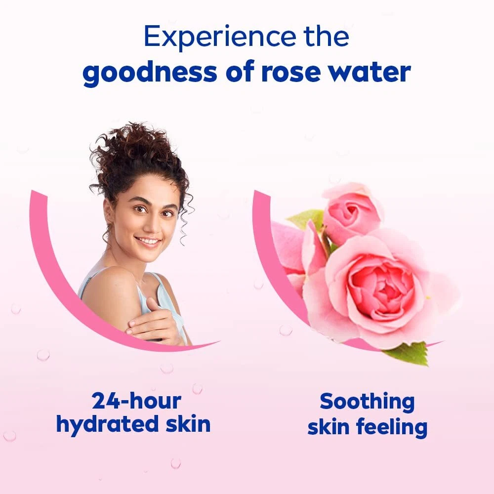 About this item NIVEA Rose Water GEL Body lotion Soothing Care has Non-sticky formula specially suited for Summer Skin This Body lotion has and fast absorbing gel formula for a soothing skin feeling It gives 24H hydration for smooth, healthy looking skin Body lotion has rose water extract Target Gender: Unisex