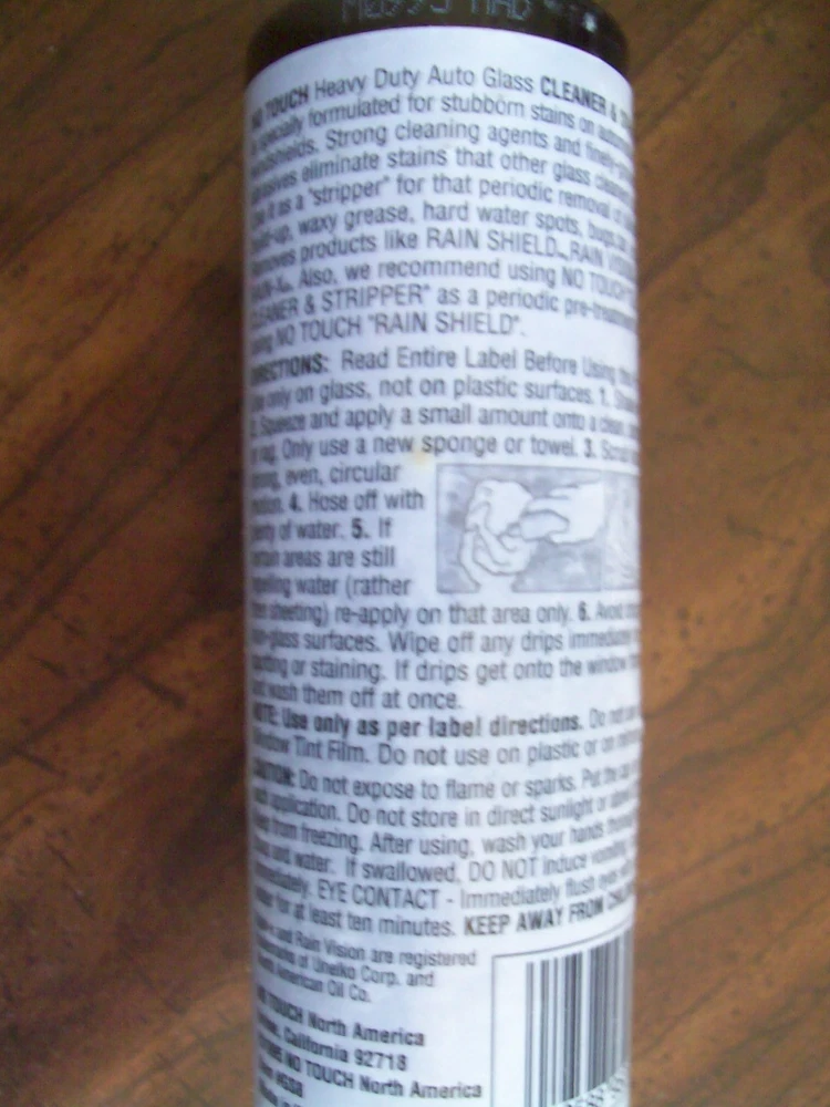 8 oz - NO TOUCH HEAVY DUTY AUTO GLASS CLEANER & STRIPPER Check videos courtesy of R. Arnold : https://www.youtube.com/watch?v=ANu3N6xNy-U https://www.youtube.com/watch?v=MVs9USVam6c Specially formulated for stubborn stains on AUTOMOTIVE WINDSHIELDS Strong cleaning agents and finely-ground abrasives eliminate stains that other glass cleaners cannot. Use it as a "Stripper' for that periodic removal of silicone film build-up, waxy grease. Removes Silicone, Hard Water Spots, Mud, Oil, Tar, Road Grime, Stains. Needs to be shaken well before using, It does separate into two liquids while stored MORE DISCOUNTS FOR LARGER QUANTITIES, JUST ASK FOR A QUOTE