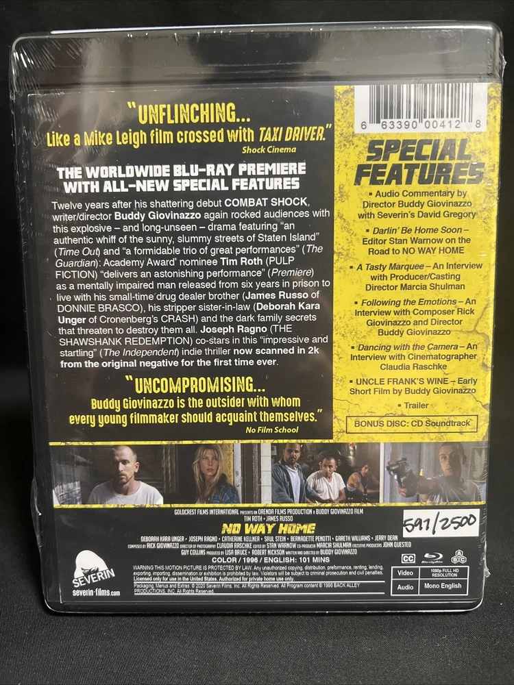 Cinematic Movement:Art/Indie FilmGenre:DramaEdition:Limited EditionDirector:Buddy GiovinazzoActor:Tim Roth, Deborah Unger, James Russo, Joseph RagnoSub-Genre:ThrillerMovie/TV Title:No Way HomeUPC:0663390004128Type:MovieRegion Code:Blu-ray: Region FreeRelease Year:1996gtin13:0663390004128Format:Blu-rayLanguage:EnglishCountry/Region of Manufacture:United States