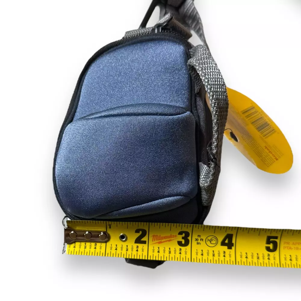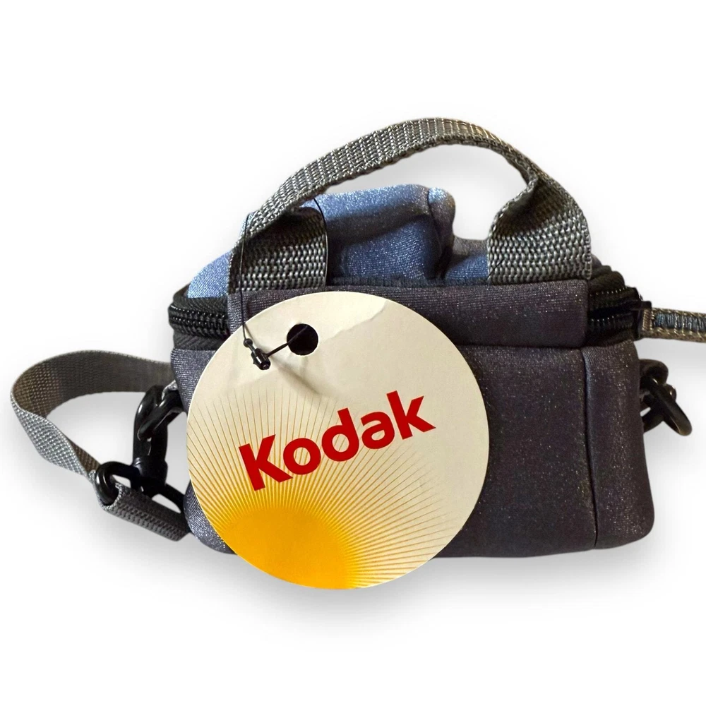NOS Kodak Venture Camera Bag 2008 Blue Gray Zip Closure with Strap Introducing the Kodak Venture Camera Bag, a must-have accessory for any photographer. This 2008 edition bag is new old stock and features a stylish blue-gray design with a convenient zip closure and an adjustable strap for easy carrying. Made with quality materials, this camera bag is both durable and fashionable. Don't miss out on this great deal! The bag is new old stock.