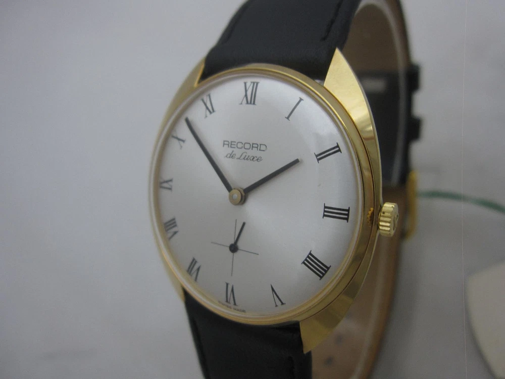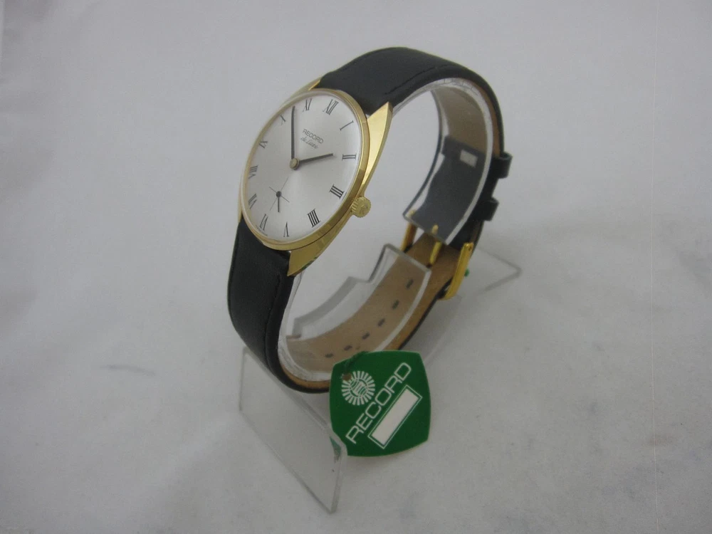Noswatch Condition: NOS (New Old Stock) Country of Origin: Switzerland Movement: Mehanical Year: 1960's Metal Color: gold Dial Color: white Strap Color: black (new leather strap) Width (3-9 o'clock / w/o crown): 32 mm Width (12-6 o'clock): 32 mm Other details: gold plated 20 micron, with separate seconds, crown is signed by Record, with original Record-Longines tag attached to the watch, comes in original Record-Longines bag. Due to bad package over the years the crystal has a few tiny dot-scratches Conditions of Sale: All watches are in working order and are checked before we send them out. All our watches are authentic and original. You can find any specific product by using the search box of our store. Shipping information: FREE SHIPPING WORLDWIDE BY NORMAL REGISTERED AIRMAIL 7-14 BUSINESS DAYS!!! We guarantee only the delay between your payment and the shipping date, not the shipping service transit time. Transit times may vary, particularly during peak periods. We are dispatching the items within 1-2 business days from the PayPal payment receipt and we are providing a tracking number directly. The expected delivery time is as written above. In case your item didn't arrive on time, please contact us, in order we should open a requiry by the post. We are sending your order to the address written by Paypal, if you want us to send it to a different address please add this request to your Paypal note during the payment process. Accepted forms of payment: Paypal is our preferred payment method . Returns and service: Should you not be happy with your purchase, you can send the product back to us by NORMAL REGISTERED MAIL, within 14 days, for a full refund minus shipping costs. If you choose to do so, pls inform us by email first! Do NOT send an item back with EMS, UPS or FEDEX. Don't hesitate to contact us if you have any questions! And we will be happy to answer before and after your purchase. We will answer ASAP!!! Check out my other items Powered by SixBit's eCommerce Solution