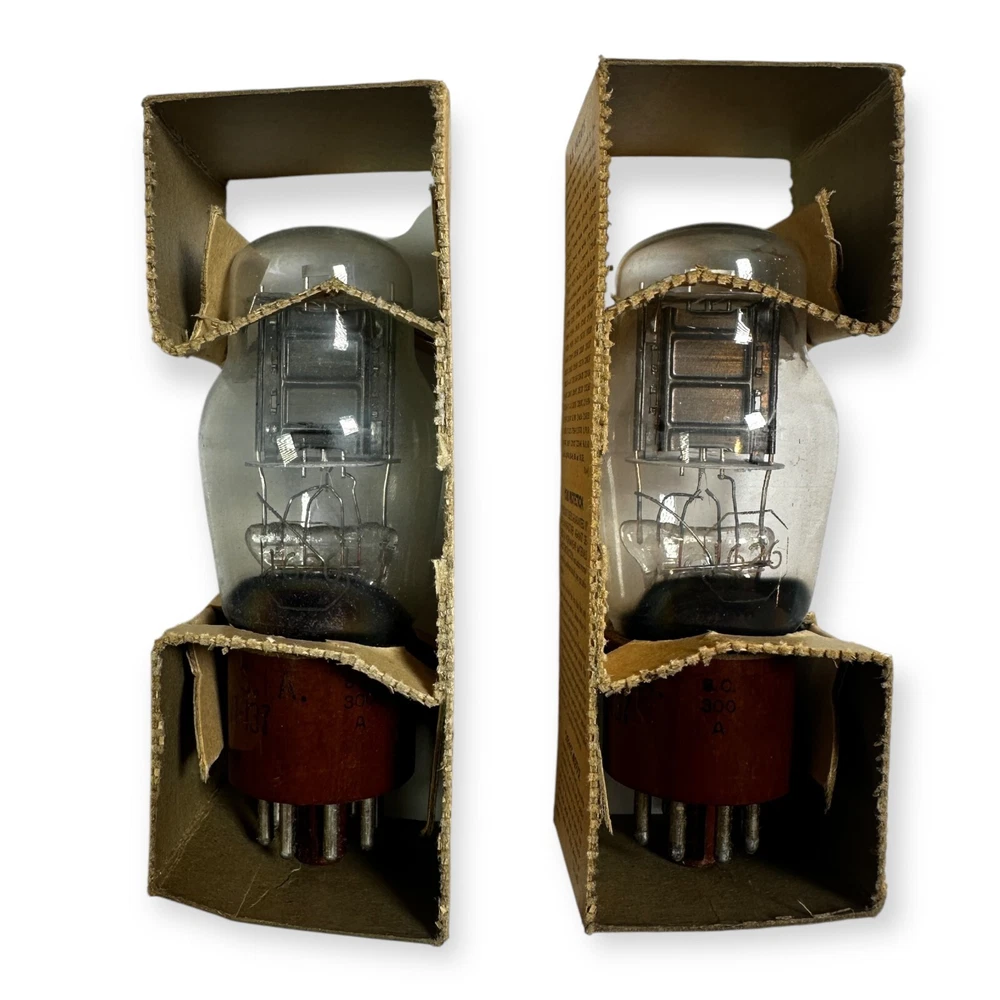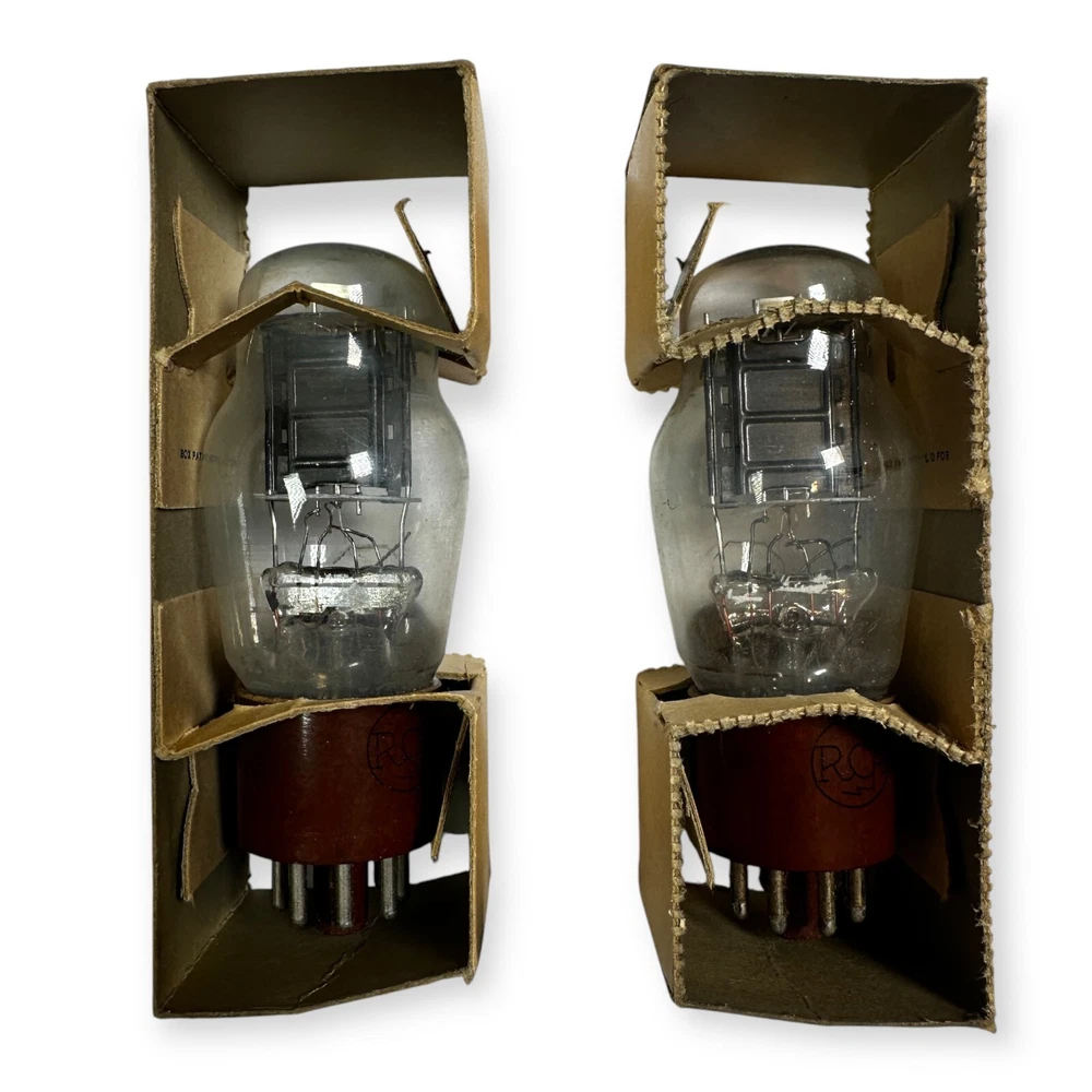 These tubes are new in box (NIB) and have not been tested. They are older stock and may have accumulated some light dust over time, which can be cleaned if desired. The original boxes show signs of age, including possible wear or discoloration. Tubes appear to be in excellent cosmetic condition, with no visible damage to the glass or pins. Due to their untested nature, they are sold as-is . Please review all photos carefully for additional details. These are not a matched pair.