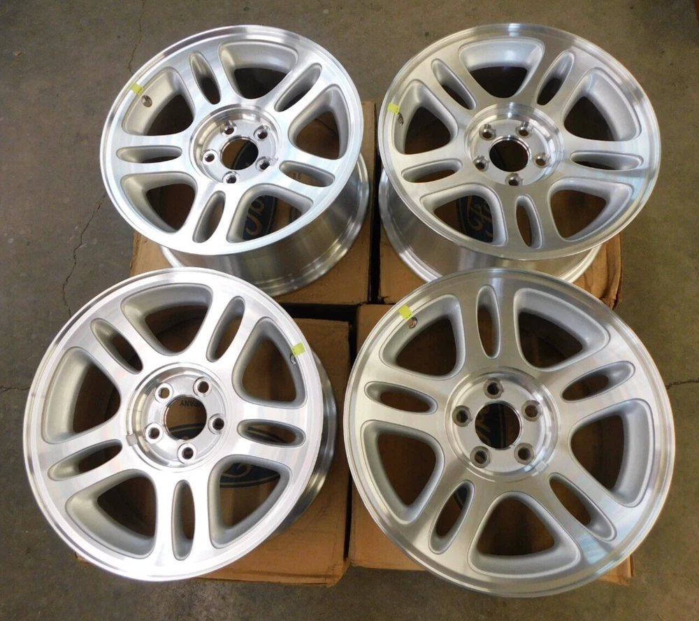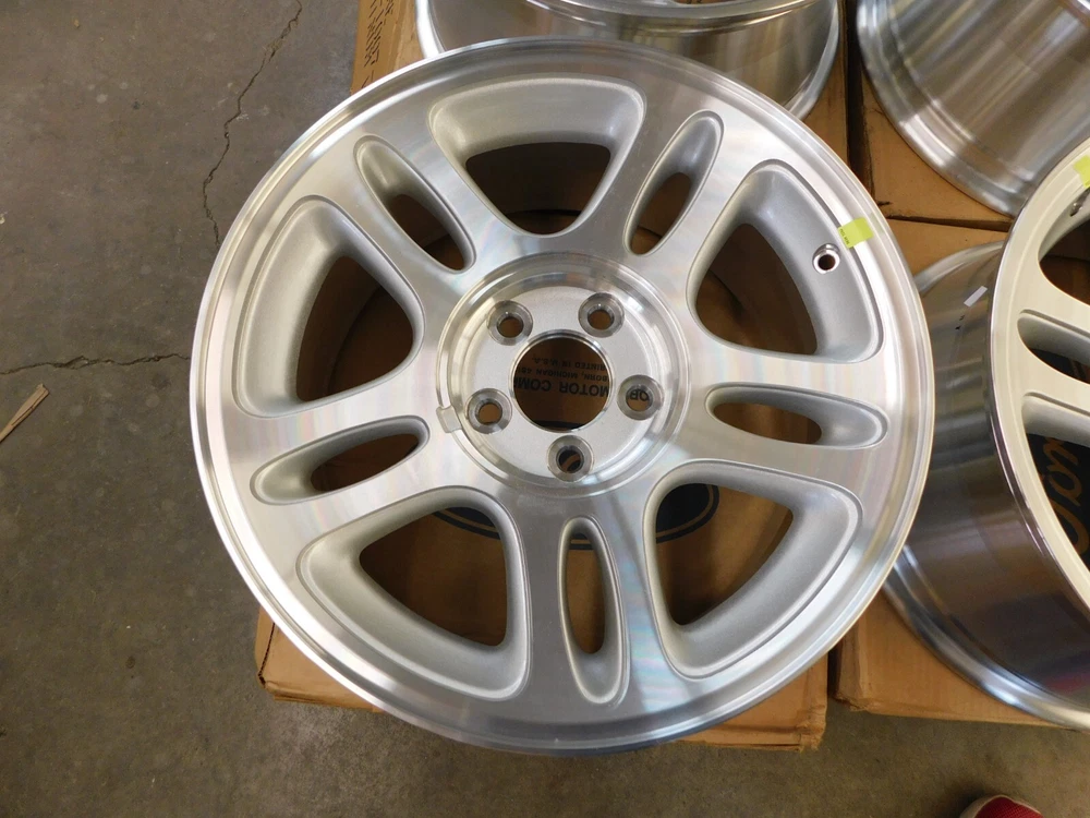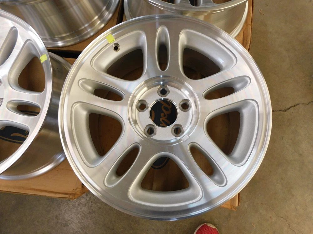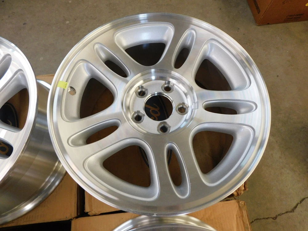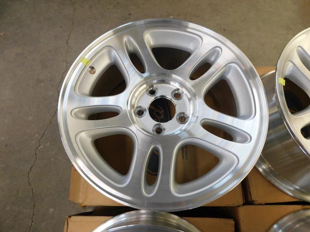 Up for auction is a NOS set of 4 wheels with center caps for some 1996-1998 Mustang models. They are brand new original Ford and in very nice condition. These have a few minimal rubs as shown but nothing serious. They are a 17x8 inch wheel. Please verify your style prior to purchase. Part number F8ZZ-1007-AB. "Free Shipping" is to the continental US only but we can ship anywhere for an additional cost. Feel free to email me with any questions or if you need to get in touch with Greg you’ll have to be resourceful. stilwellsobsolete Evansville, Indiana. Thanks for looking. Box # NB loose Return Policy: Refunds will be granted for items returned within the specified time frame and will be subject to a 30% restocking fee (to cover original shipping and fees). An item must be returned in the same condition it left here and with its original box (where this applies). Any new item that upon return shows signs of use will not be eligible for a refund. If you anticipate having to return an item prior to purchase please ask questions to try and avoid the un-necessary sending of that item. Returns are not available for items sent internationally or freight items. Feel free to contact us if you have any questions. Thank you for reading this and for your understanding. PLEASE READ BEFORE BIDDING... NOS, or new old stock does not mean the part is mint or even perfect! We do not own or sell anything that is perfect. Ford Motor Company has always been in the business of building mass produced vehicles and parts, NOT show cars. When we describe something as being NOS that means it is new and has never been installed on a car. Any out of the normal flaws are mentioned and most times even pictured in the description so there should be no surprises, check our feedback. We try our best to accurately describe the parts we sell but we can and do make mistakes just like everyone else. If you have ANY doubts about the condition or application of the item being sold then please ask questions before bidding. If you plan on not being satisfied with an item or do not have the means to pay for it then please do not bid. Thank you for reading this and for your understanding.