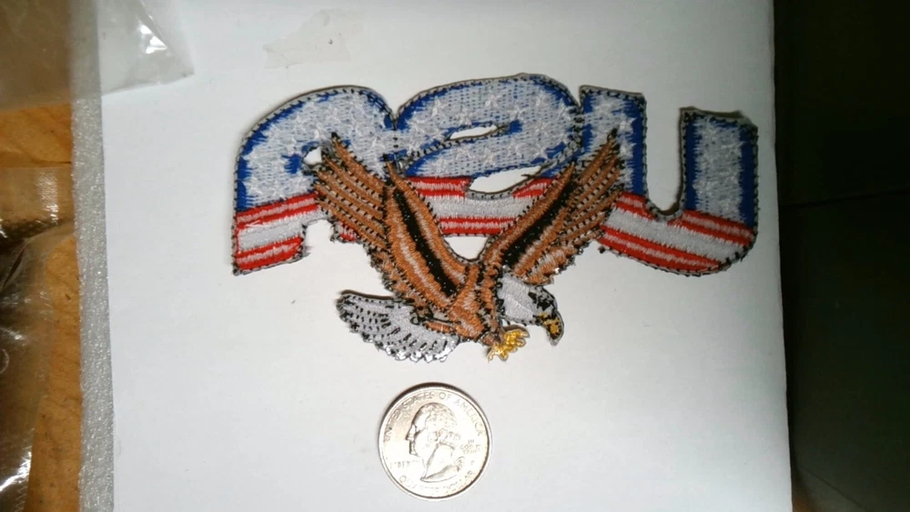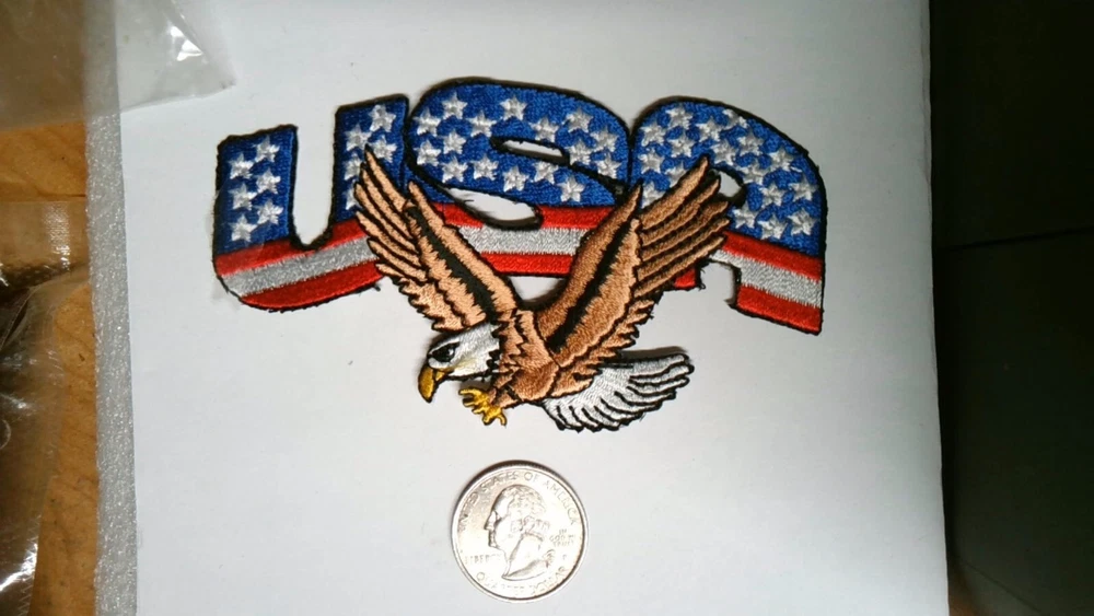 NOVELTY PATCH SEW ON RED WHITE AND BLUE USA CUT OUT AMERICAN FLAG WITH EAGLE