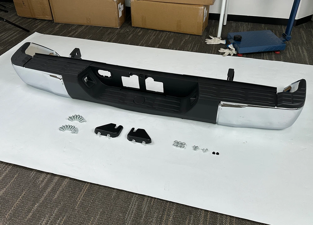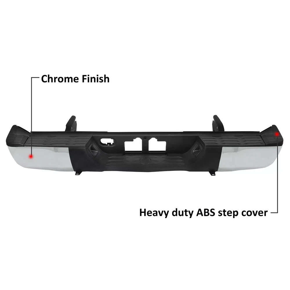 Color:Chrome + Black Surface Finish:Chrome Material:Steel + Plastic Placement on Vehicle:Rear Aftermarket Replace Number for TO1103119, TO1104123, TO1105123, TO1191104, TO1196102, TO1197102, TO1190103, TO1162103, TO1126100, TO1127100 Fits: For Toyota Tundra 2014-2021 Fit Models Without Sensor Hole Only Package: 1 set of Rear Step Bumper On Dec 13, 2024 at 02:09:37 PST, seller added the following information: On Dec 16, 2024 at 10:25:30 PST, seller added the following information: