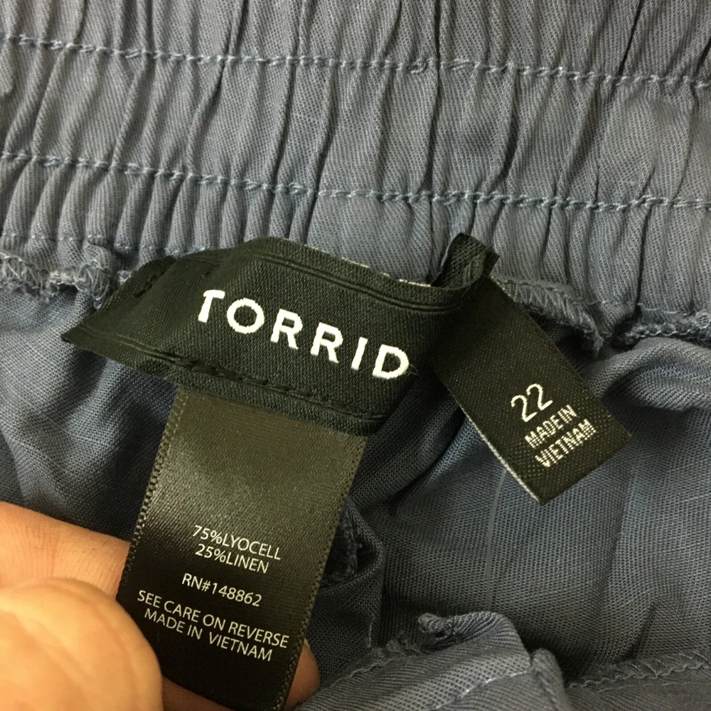 Waist Size: 42 in Country/Region of Manufacture: Vietnam Size: 22 Occasion: Casual, Travel, Workwear Features: Comfort, Easy Care, Pockets Type: Pants Estado del artículo: Nuevo con etiquetas Rise: Mid (8.5-10.5 in) Material: Linen, Lyocell Season: Fall, Spring, Summer, Winter Garment Care: Machine Washable Brand: Torrid Front Type: Flat Front Pattern: Solid Department: Women Accents: Button, Zipper Color: Purple Inseam: 27 in Leg Style: Tapered Style: Ankle Size Type: Plus Closure: Button, Zip Fit: Regular