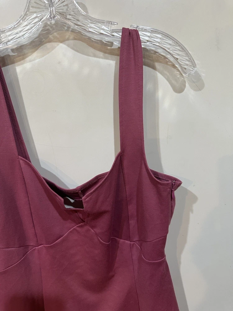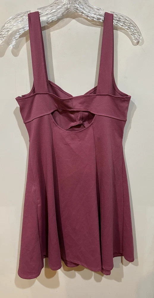 This beautiful JustFab mini skater dress is perfect for any occasion! The dusty rose color and sweetheart neckline add a touch of charm, while the zip closure and strappy sleeves give it a trendy edge. Made with a combination of polyester and spandex, this dress is both comfortable and machine washable. The dress comes in size L and is ideal for travel, weddings, parties, or casual wear. The collarless design and cut-out features make it unique, while the solid pattern and short length give it a classic look. The dress has accents like zipper and features like heart, hipster, rock, grunge, 50s, 60s, and steampunk that make it stand out. Get ready to rock this dress and steal the show! Measurements: Shoulder to hem: 36 inches Armpit to armpit: 18 inches