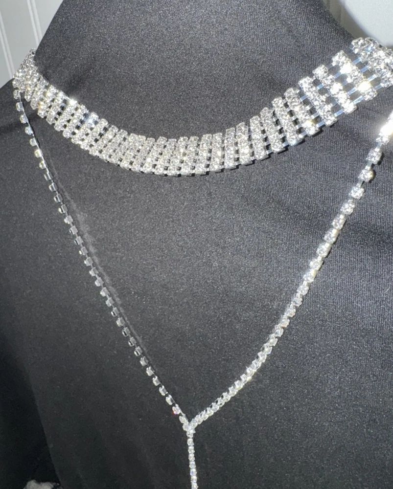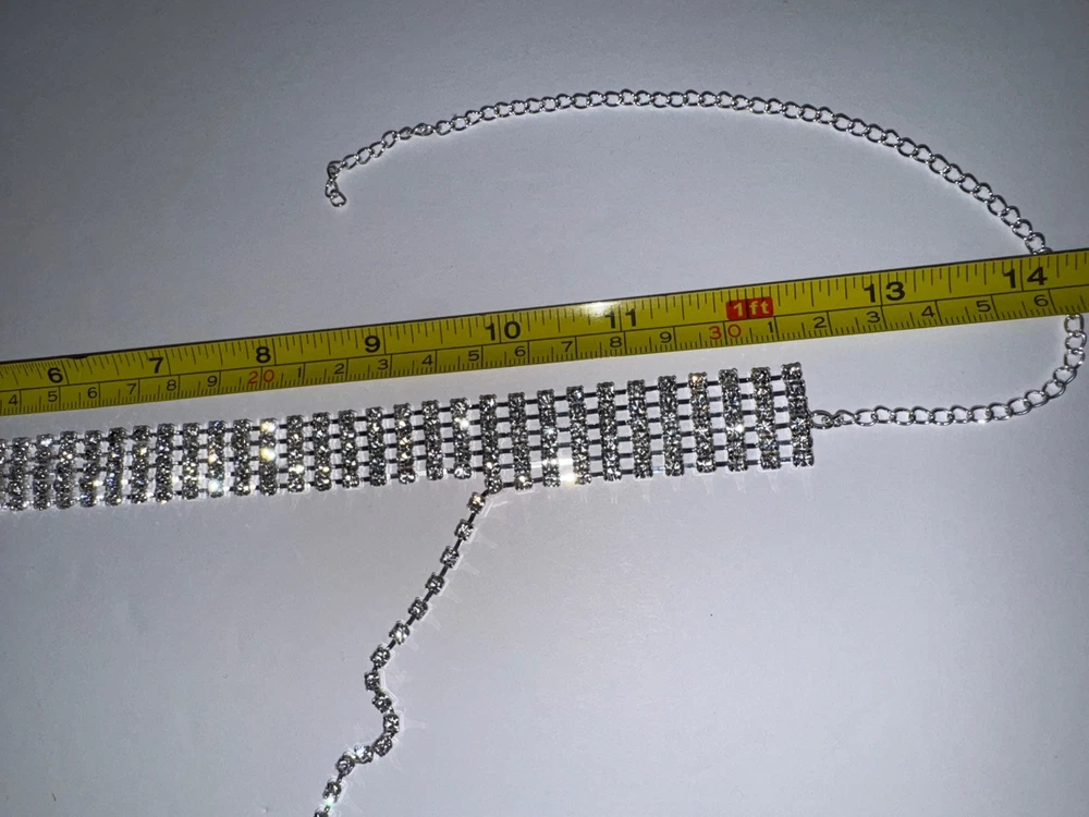 This choker is absolutely stunning! The rhinestones sparkle beautifully, and the long tassel drop adds such an elegant touch.$$