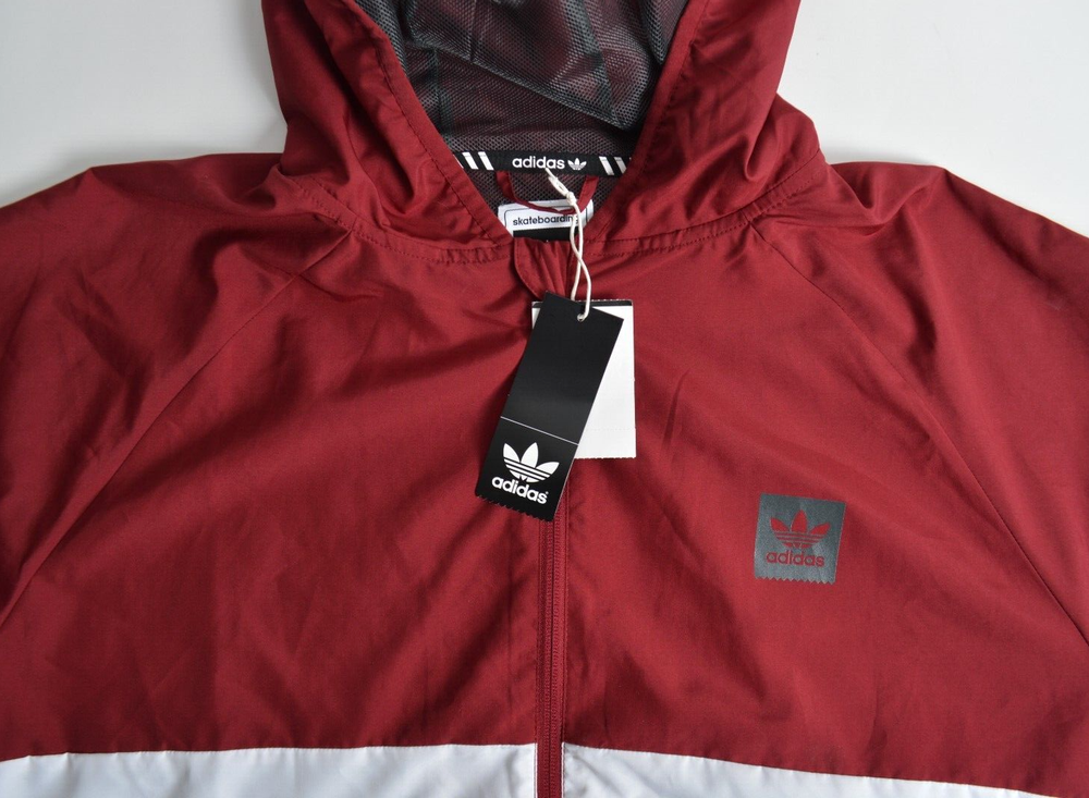 RETAIL: $65 .00 You are bidding on a ADIDAS BLACKBIRD PACKABLE WIND JACKET COLOR: RED SIZE: MENS EXTRA LARGE CONDITION: NEW WITH TAGS INFO: Sporadic showers and howling wind cower in the presence of the Adidas Blackbird Packable Wind Jacket. Ideal for day to day commuters and recreation enthusiasts, the Blackbird Packable Wind Jacket features a durable and water-repellent plain weave polyester shell and a sweat-wicking mesh liner to keep you dry and dapper during activities. Face Fabric Shell – 100% Polyester Plain Weave Durable Water-Repellent (DWR) Coating Lining Material 100% Polyester Mesh Fit Regular Fit Additional Features Full Zip w/ Hood Printed Back Neck Tape Reflective Trefoil Logo Label (left chest) Reflective Linear Trefoil Logo (back) Packs into right pocket.