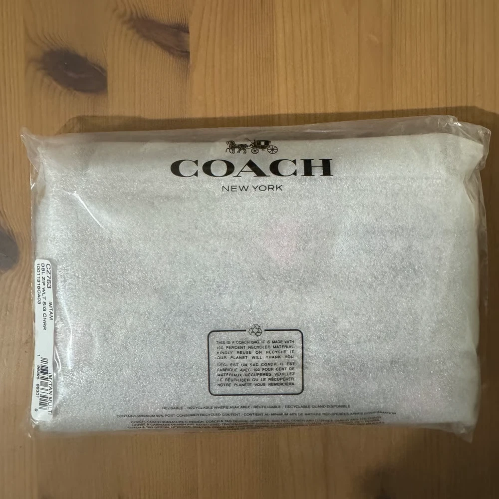 Bag came brand new. It's so cute! I was disappointed that it wasn't exactly like in the picture. The one I got had the cherries upside down which isn't what I was expecting. That's my bad though for not just asking the seller first. I still love it though. My first coach bag! Good price and amazing seller. Thank you!