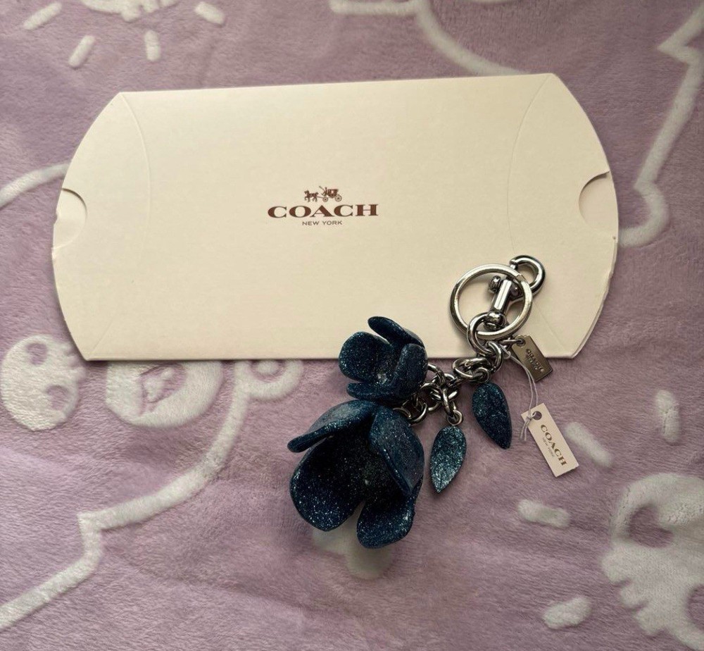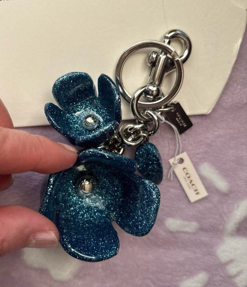 Make a statement with this large chunky flower charm. Cool blue glitter resin and silver tone hardware make for a perfect color combination! New with tags item includes original box and tag. Overall length: 15 cm Economy shipping: Shipped by registered airmail with tracking. Delivered by postal service.