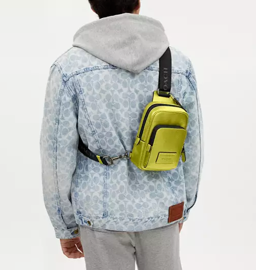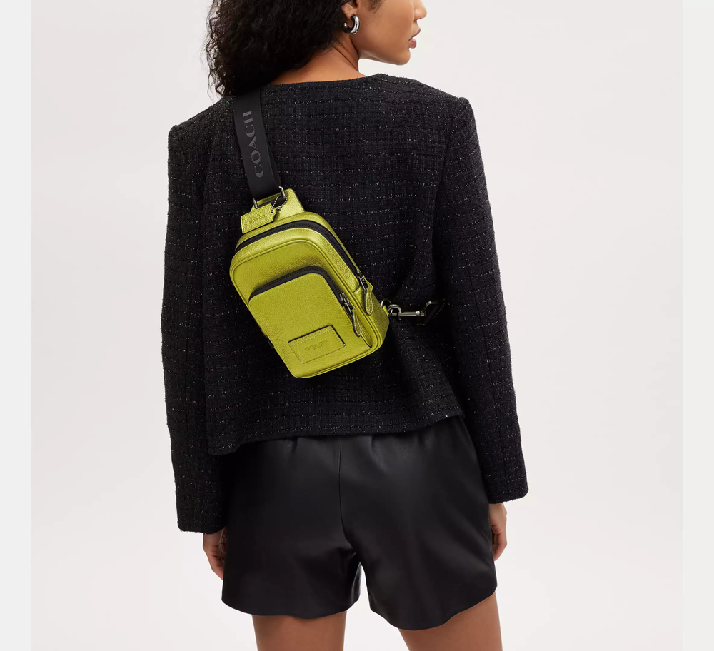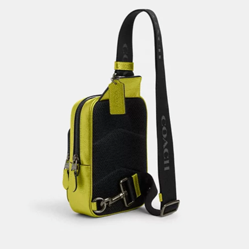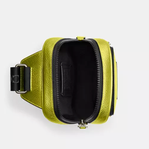 Black Antique Nickel/Metallic Citrine Foil metallic refined pebble leather Zip closure, fabric lining Outside zip pocket Adjustable shoulder strap with 49" length for crossbody wear 5 1/4" (L) x 7 3/4" (H) x 2" (W) Style No. CP141