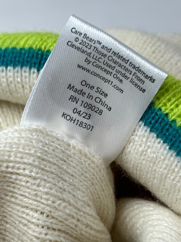 Brand: Care Bear Department: Unisex Adults Features: Stretch Fabric Type: Knit Pattern: Solid Accents: Embroidered Color: Multicolor Theme: Bear, Care Bear Size: One Size Vintage: No Occasion: Activewear, Casual, Travel Character: Care Bear Material: Acrylic Character Family: Care Bear Country/Region of Manufacture: China Season: Fall, Spring, Winter Style: Beanie