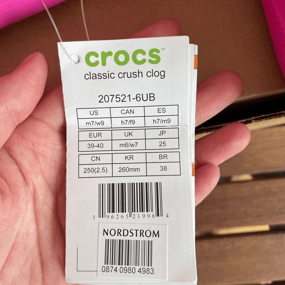 Brand new Crocs Crush Clog Size: Women 9 Men 7 Color: Juice This color is sold out online! ************ Crush Clog Details: Bold styling and added height Unique 2-inch / 5.2cm height, measured from floor to heel rest Customizable with Jibbitz™ charms Iconic Crocs Comfort™: Lightweight. Flexible. 360-degree comfort.