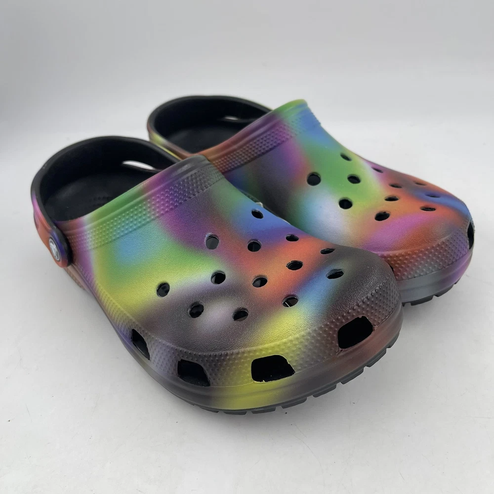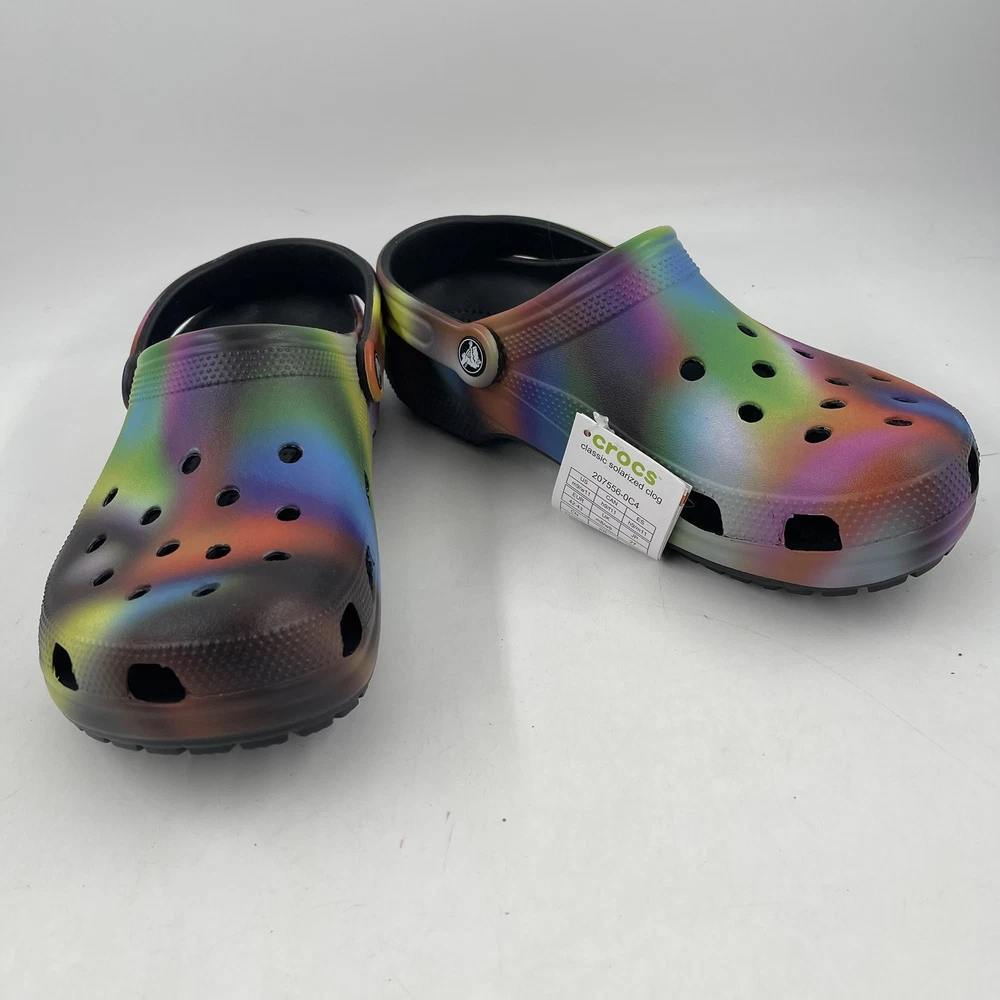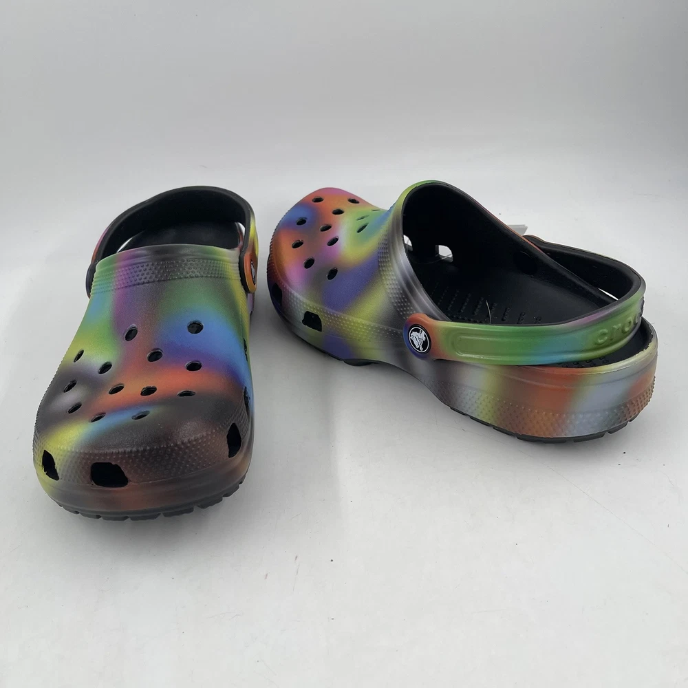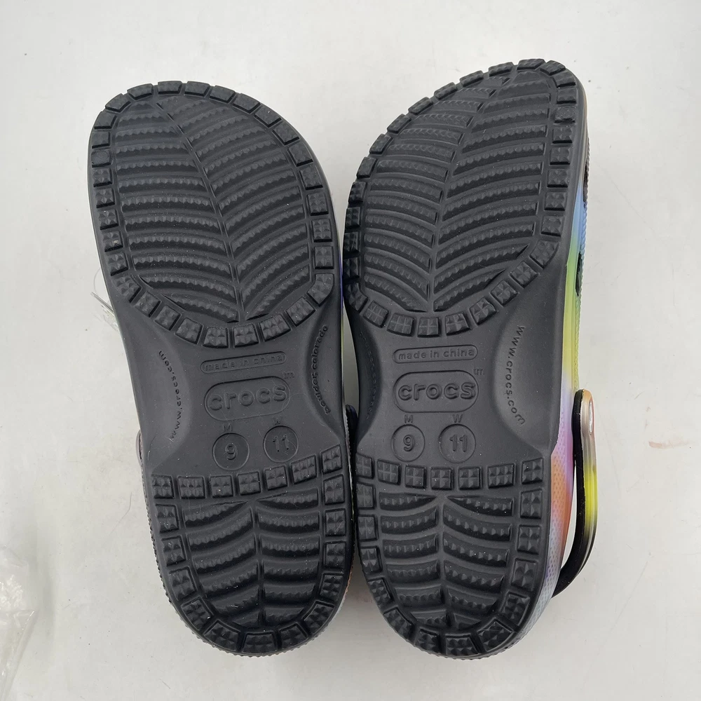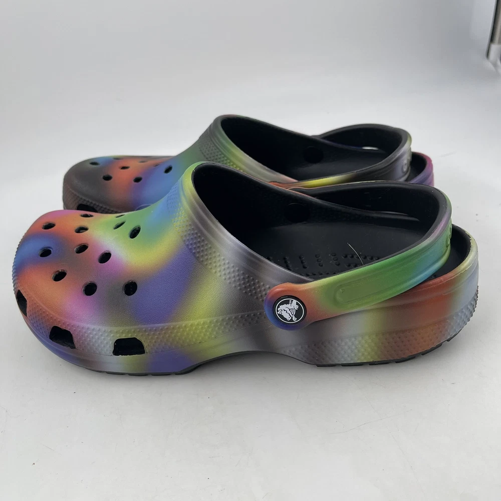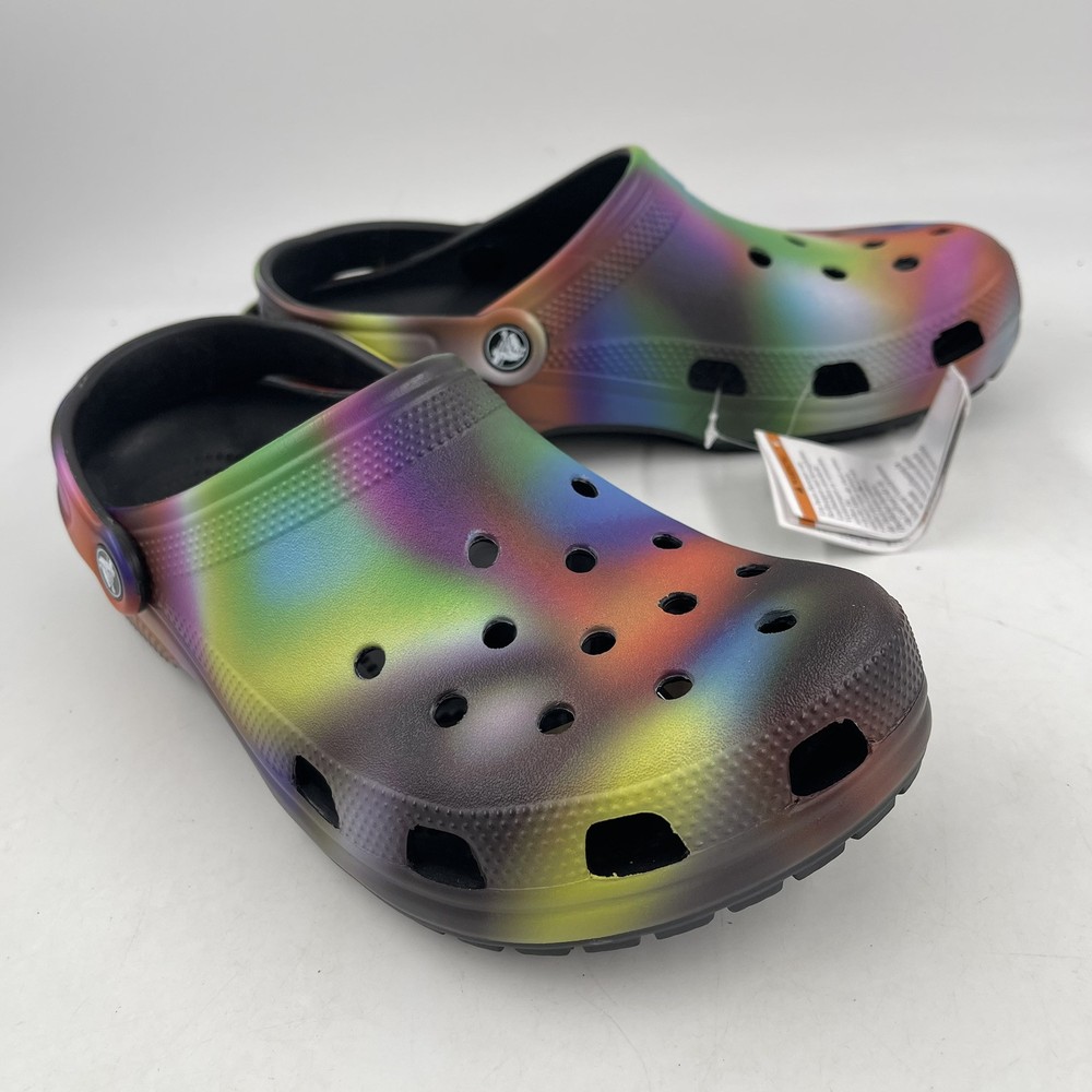 NWT Crocs Unisex Classic Solarized Clog Tie Dye Comfort Shoe Size Men 9 Women 11. BRAND NEW WITH TAGS Men’s Size 9 Women’s Size 11 Crocs women’s Classic Solarized tie dye clogs shoes. Please see photos for details of shoes •Lightweight Croslite foam construction •Easy slip on design with pivoting heel strap •Classic round toe with roomy fit •Molded footbed with Iconic Crocs Comfort •Durable and non-marking outsole •Customize with Jibbitz charms for a personalized look •Crocs logo Brand new. No original box Carefully packaged and box shipped same/next business day Please feel free to ask questions All items come from a smoke-free/pet friendly environment Please make sure to follow me. I list new inventory daily SH2900/3042PE-Q02