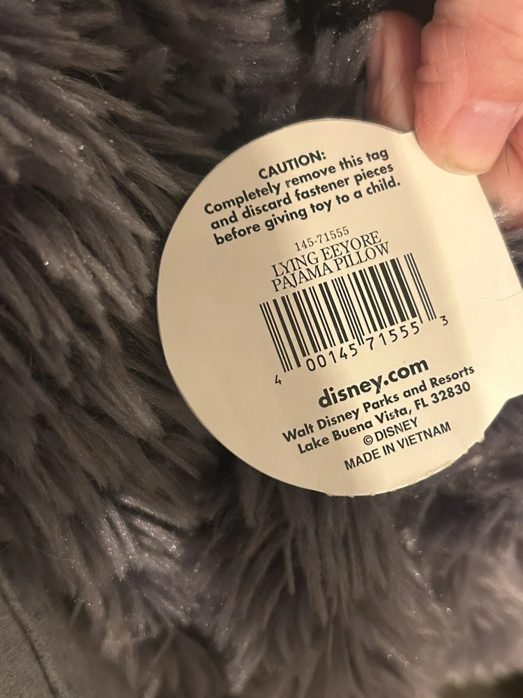 Disney World Eeyore Plush Storage Pillow, fill Eeyore with other stuffed animals, a blanket or sleepover clothes and snuggle up. SUPER SOFT! Tail is attached by a string and has velcro to reattach it to Eeyores body!!