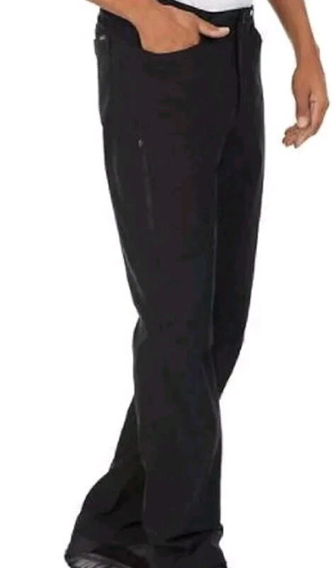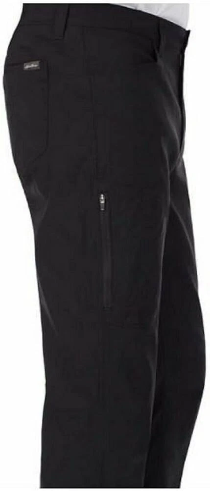 Upgrade your wardrobe with these versatile and stylish Eddie Bauer Men's Tech Pants. These pants come in a classic black color, with a straight leg style and a flat front design. They feature a convenient 5-pocket design, with a zip and button closure for added security. Made from a comfortable blend of polyester, nylon and spandex, these pants are perfect for travel, casual wear or workwear. They have a regular fit and are available in size 38x30. With their water-repellent and two-way stretch features, these pants are ideal for the winter and fall seasons. The Eddie Bauer Tech Pants are machine washable and are a great addition to any wardrobe.