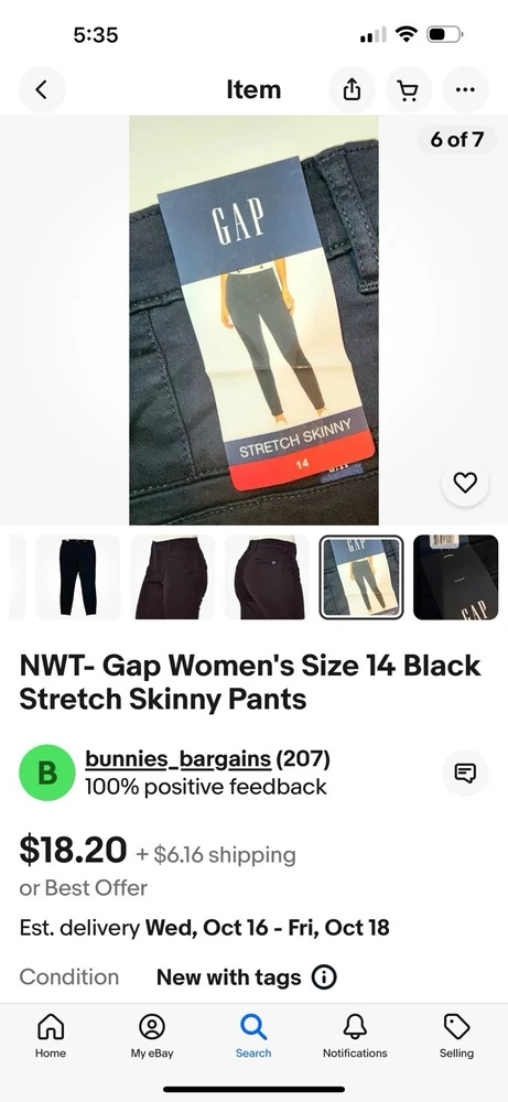 NWT- Gap Women's Size 14 Black Stretch Skinny Pants