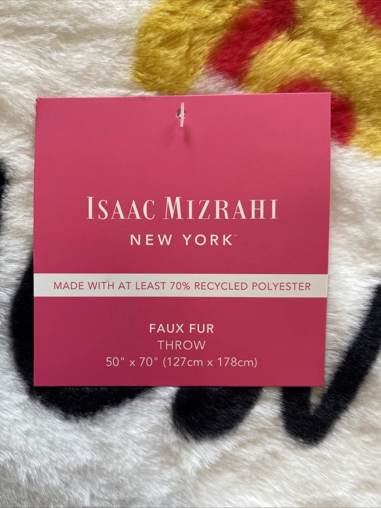 NWT ISAAC MIZRAHI Faux Fur NEW YORK Icons Throw Blanket 50 x 70 So soft.