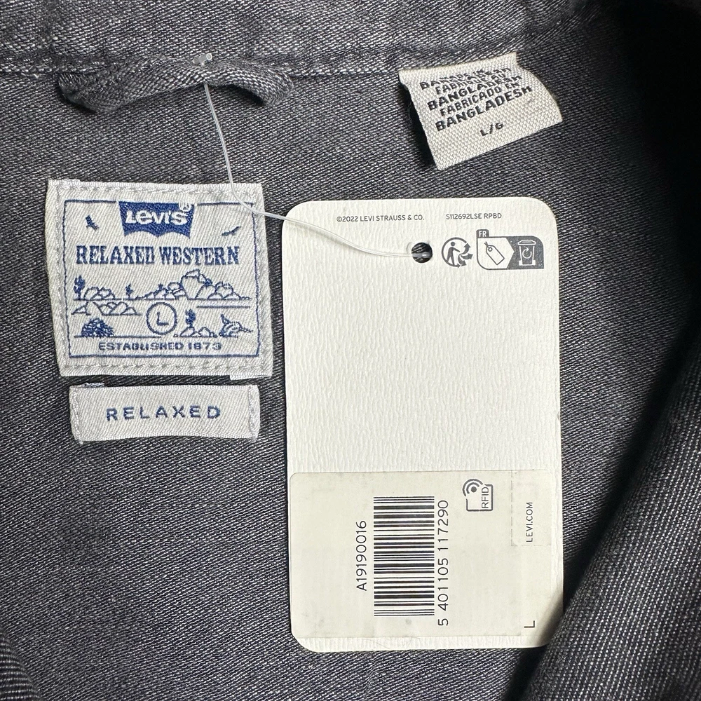 Look stylish and fashionable with this Levi's Men's Relaxed Fit Western Shirt. The shirt is made of pure cotton and has a solid black color that looks classic and versatile. The shirt features a collared neckline and long sleeves with button closures that make it easy to wear and take off. This shirt is perfect for casual occasions and can be paired with jeans or chinos for a complete look. The shirt has a relaxed fit that provides comfort and ease of movement. The shirt is new with tags and has never been worn. Add this shirt to your wardrobe to elevate your style and look.