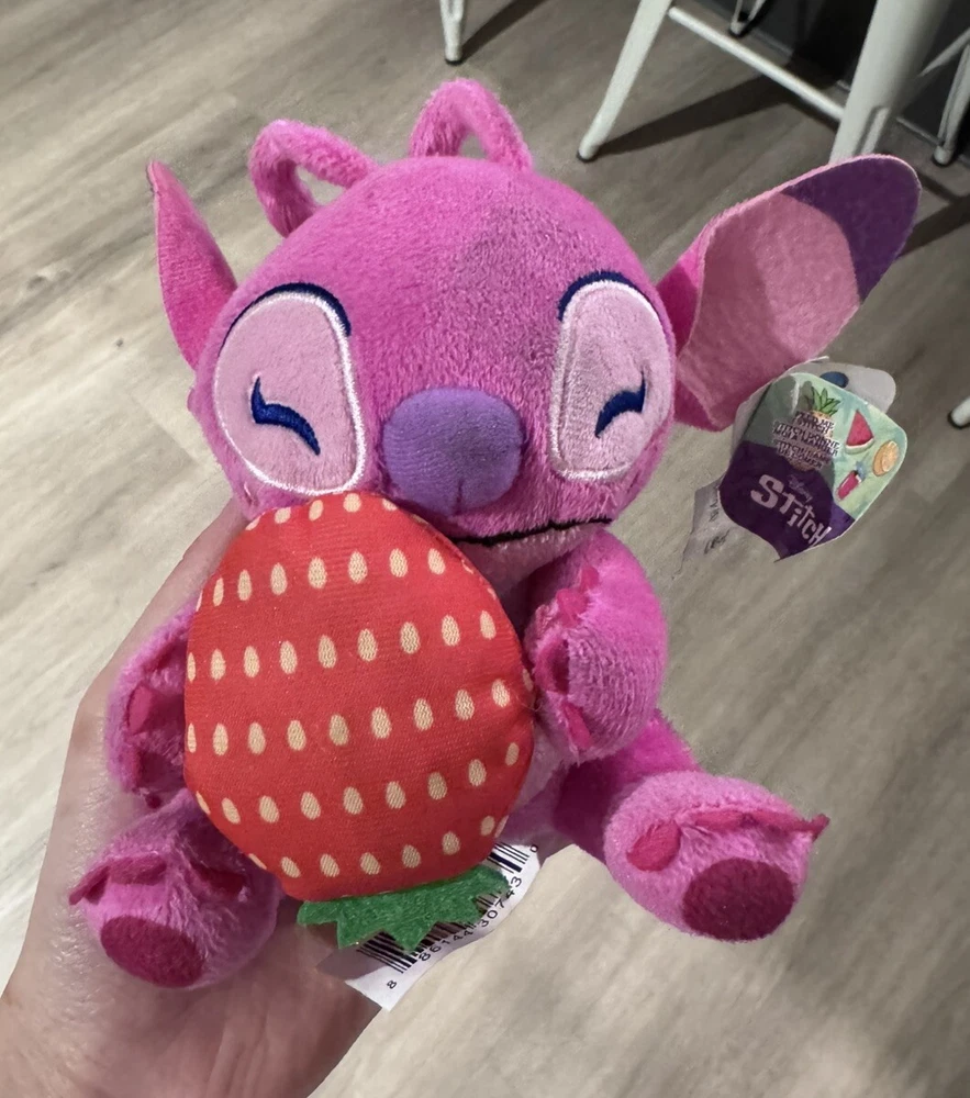 NWT Lilo & Stitch Feed Me Pink Angel Strawberry 6" Plush Disney. Condition is New. Shipped with USPS Ground Advantage.