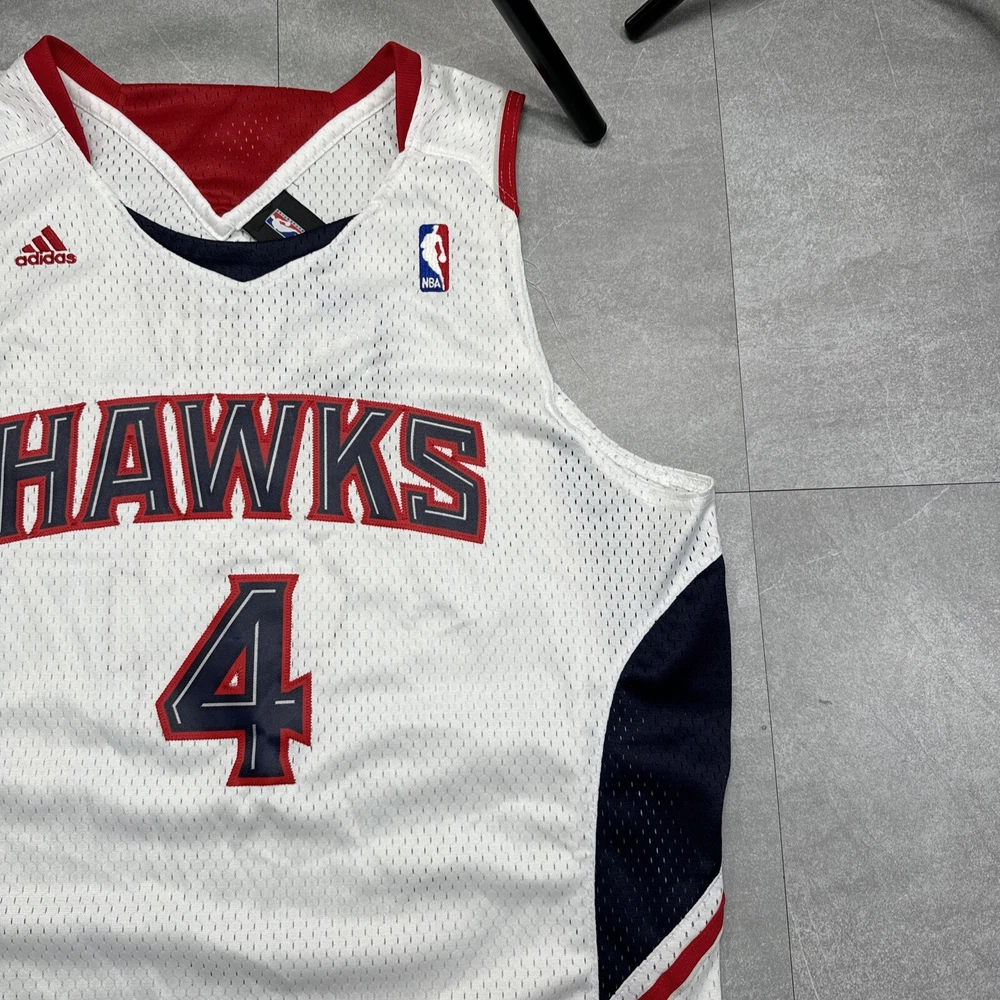 Show support for Atlanta Hawks with this NWT Original Authentic Adidas Joe Johnson #4 LAW Jersey VTG NBA. This officially licensed jersey is perfect for basketball fans and features the team's colors of white and red. The jersey is made of high-quality materials and is available in size XL for men. Its country of manufacture is China and it is perfect for basketball enthusiasts of all levels. Celebrate the Atlanta Hawks with this amazing piece of fan apparel, perfect for any game day or event.